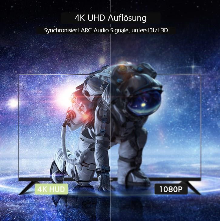 4K Unterstützung, Steckergehäuse aus Aluminium |