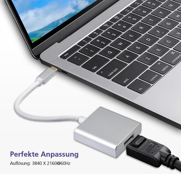 Helos PREMIUM - USB/DisplayPort-Adapter - USB-C (M) bis DisplayPort (W) - USB 3.1 / DisplayPort 1.2 - 10 cm - 4K Unterstützung - Silber