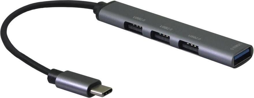 Helos HUB, 4in1 USB-C 3.2 St./3x USB-A 2.0 Bu. + 1x USB-A 3.0 Bu., spacegrau hochwertiges Aluminiumgehäuse , bis zu 5 Gbit/s dank USB 3.0 Standard , Plug & Play , USB-Type C 3.2 St. HUB mit 3x USB-A 2.0 Bu. und 1x USB-A 3.0 Bu. , PREMIUM , CE-zertifiziert , vergoldete Kontakte , ROHS 2.0 und REACH-konform , Farbe: spacegrau (344447)