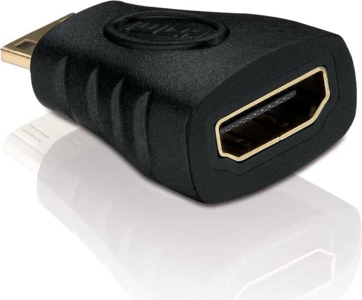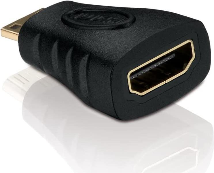 Helos Mini HDMI/HDMI Adapter - Eco - 1080p Mini HDMI/HDMI 1080p Adapter mit vergoldeten Steckkontakten. Mini HDMI C Stecker (19pol) auf HDMI A Buchse (19pol). Farbe: Schwarz *RoHS Compliant* (X-HA030)
