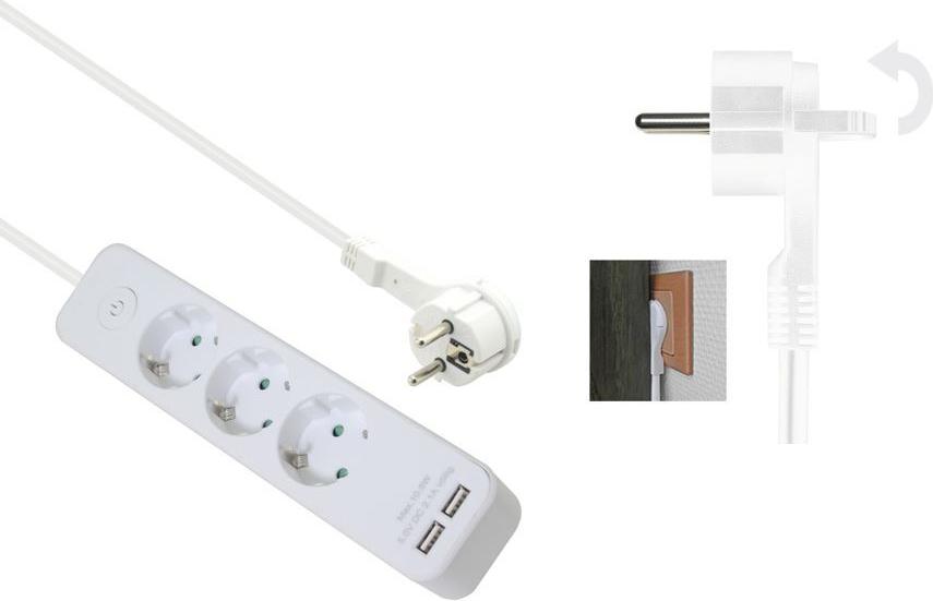 Helos Steckdosenleiste ADVANCED, 3-fach, USB-Charger weiß, 1,5m, mit Schalter Robustes ansprechendes Design , 1,5m Zuleitung , Leiterquerschnitt: 1,5 mm² , Kabeltyp: H05VV-F 3G1.5mm , mit Druck-Schalter , 3 Schutzkontaktsteckdosen 45° gedreht , ...