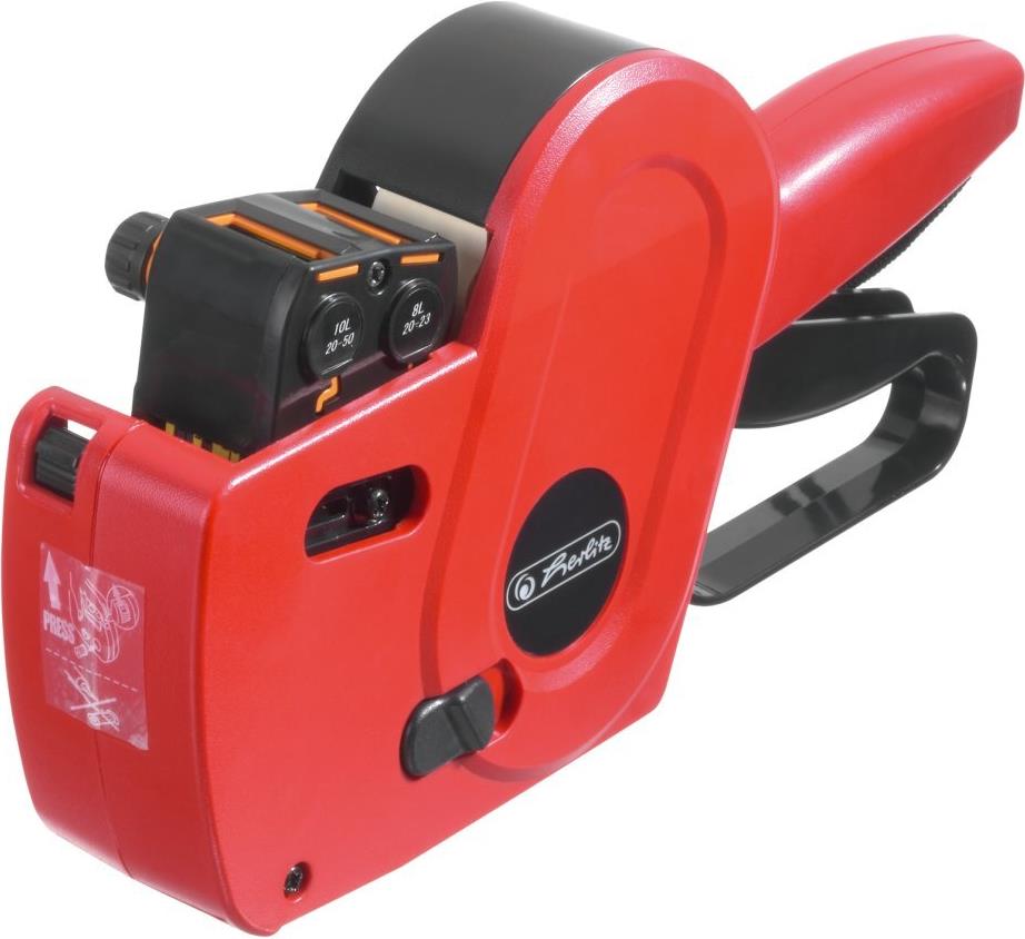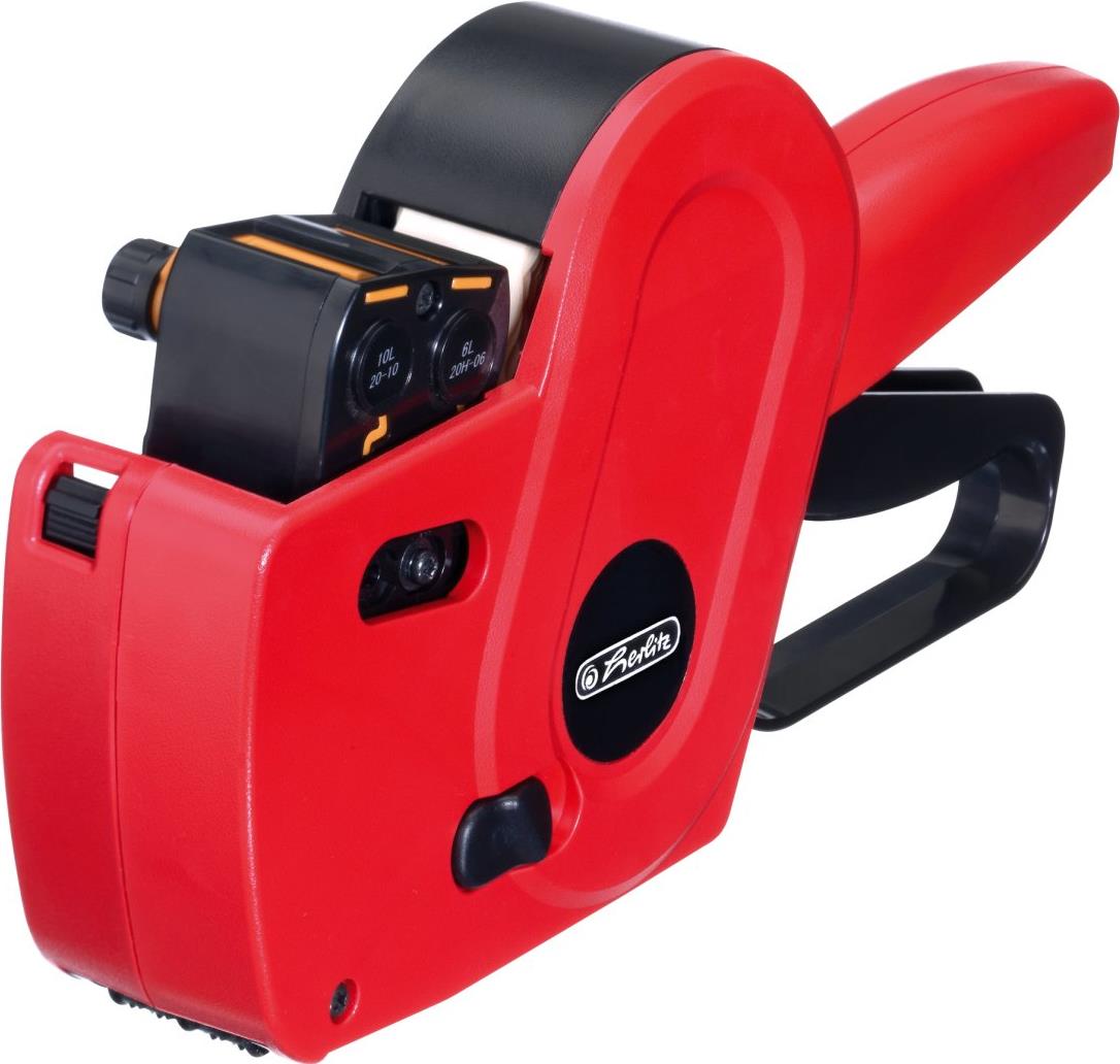 herlitz Preisauszeichner, 2-zeilig, 10-8-stellig aus Kunststoff, mit Permanentdruckrolle, Farbe: schwarz-rot (1605120)