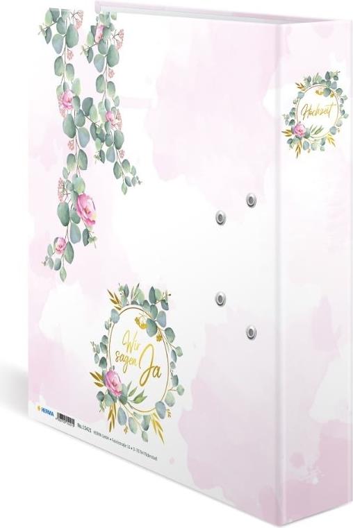 HERMA Hochzeitsordner "Wir heiraten", DIN A4 Motivordner Folienprägung im klassischen Aquarelldesign, - 1 Stück (15421)