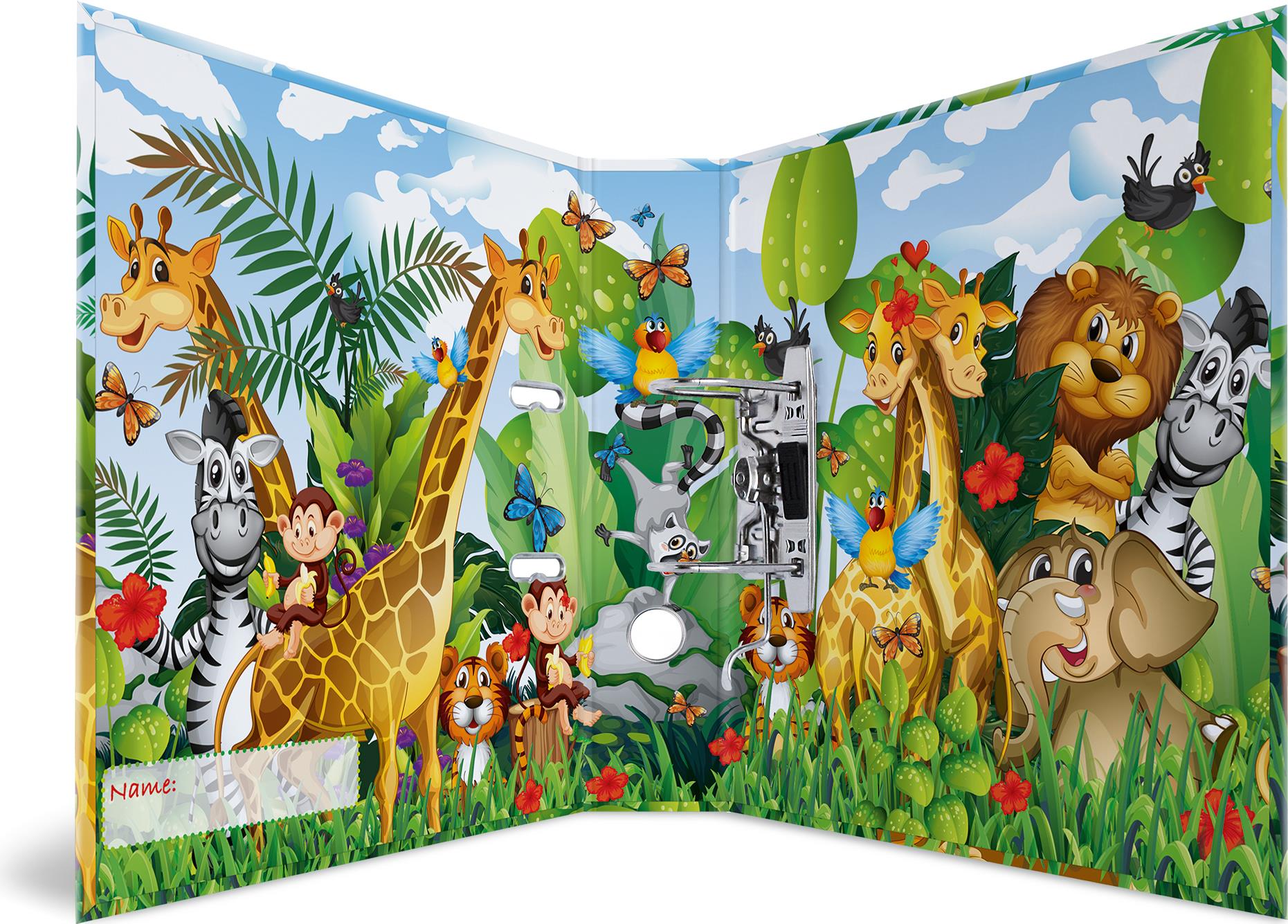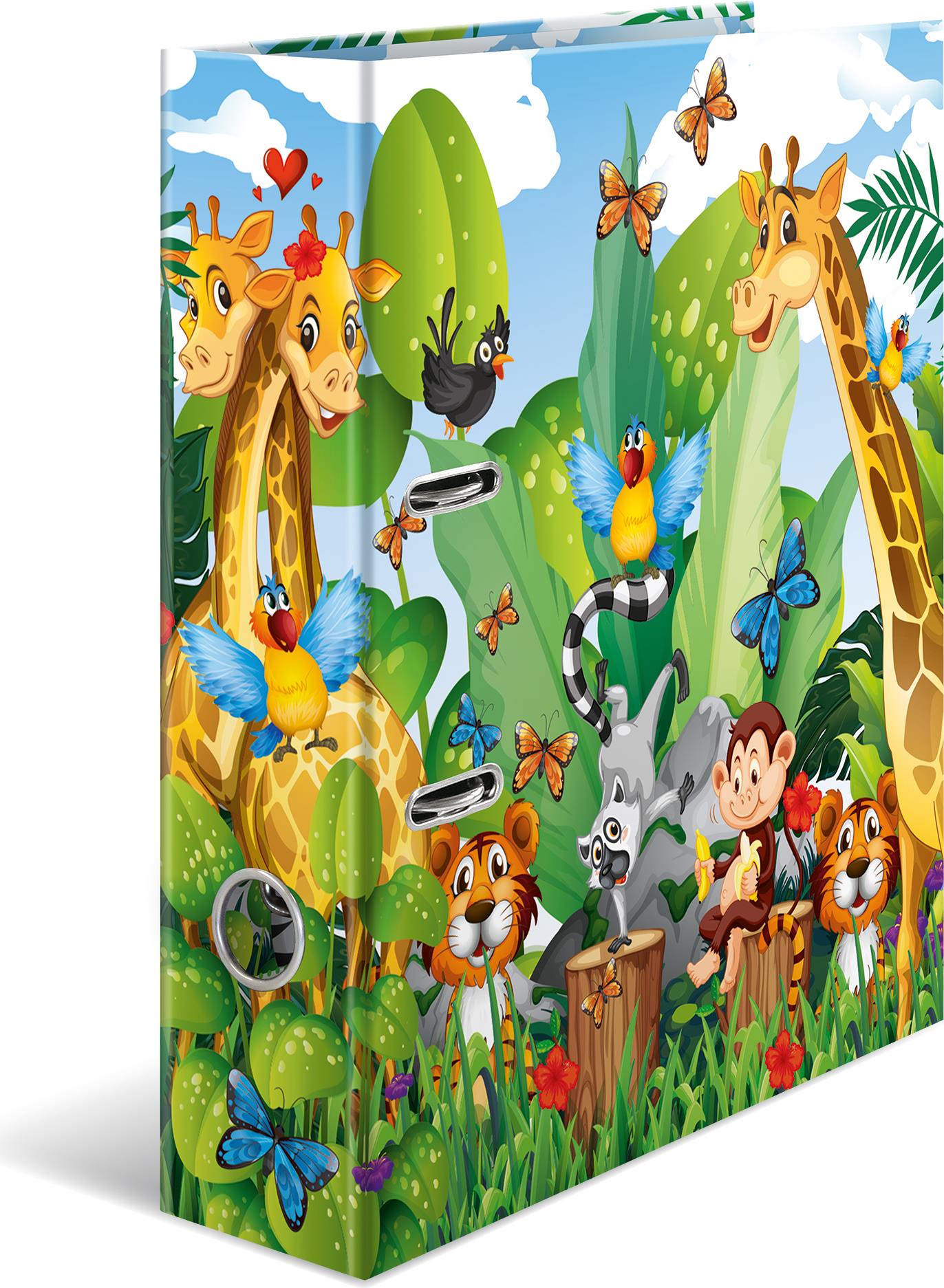 HERMA Kindergarten-Motivordner "Dschungel", DIN A4 Rückenbreite: 70 mm, aus stabilem Karton, bedruckter - 1 Stück (19277)
