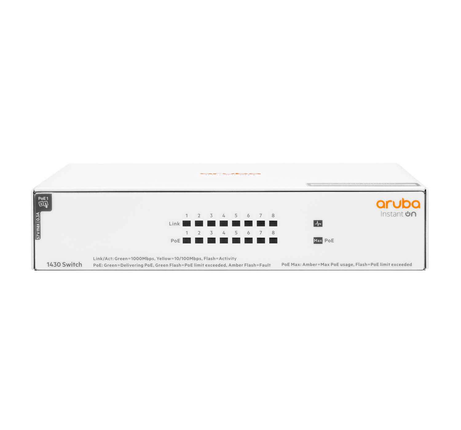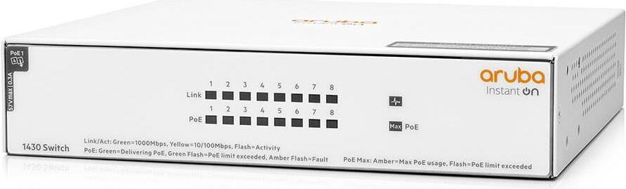 | Produktbeschreibung | HPE Aruba Instant On 1430 8G Class4 PoE 64W Switch - Switch - 8 Anschlüsse - unmanaged - an Rack montierbar |
