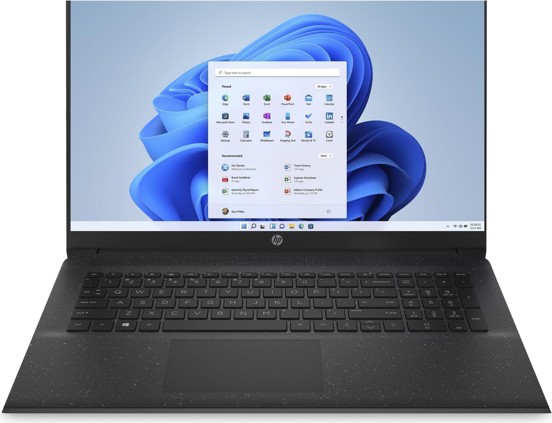 Das HP 17 Laptop hat ein durchdachtes Konzept und ermöglicht durch einen starken Intel Prozessor, schnelle Wi-Fi Technologie und jede Menge Speicherplatz hohe Leistung, Produktivität und Effizienz. Genieße dank des Hebescharnier-Designs und des größeren Clickpads eine natürlichere und bequemere Position beim Tippen. Das HP 17 Laptop wird aus nachhaltigen Materialien wie Kunststoffen, die andernfalls unter Umständen ins Meer gelangt wären, und recyceltem Altplastik aus dem Verbraucherbereich gefertigt.
