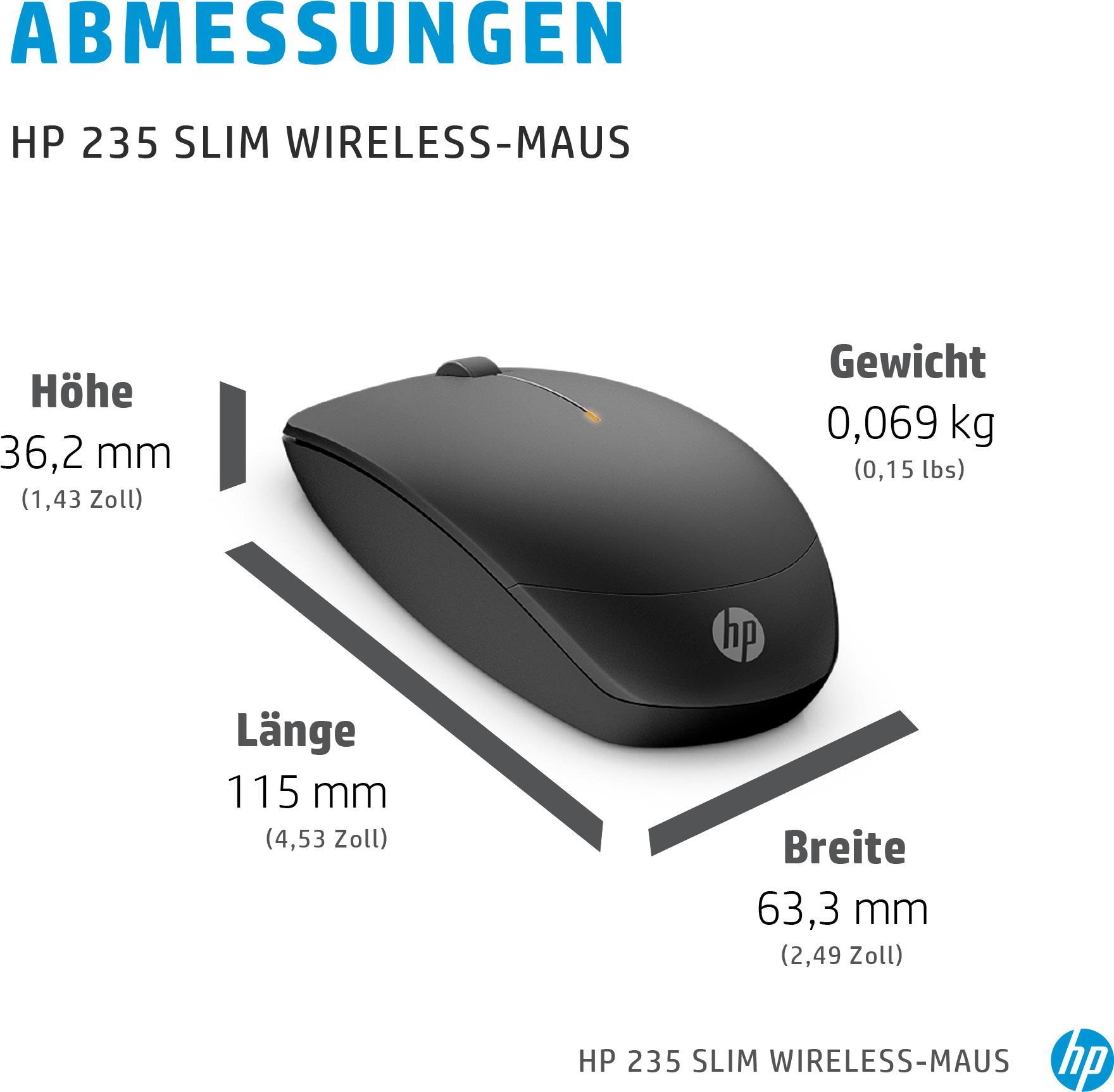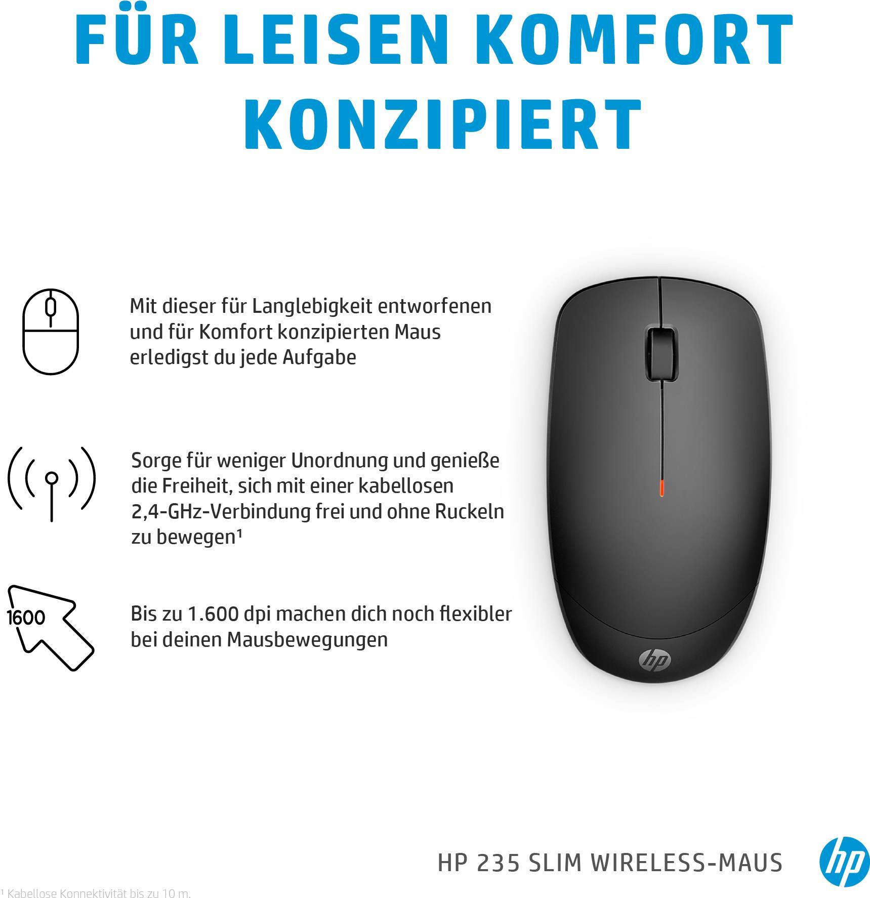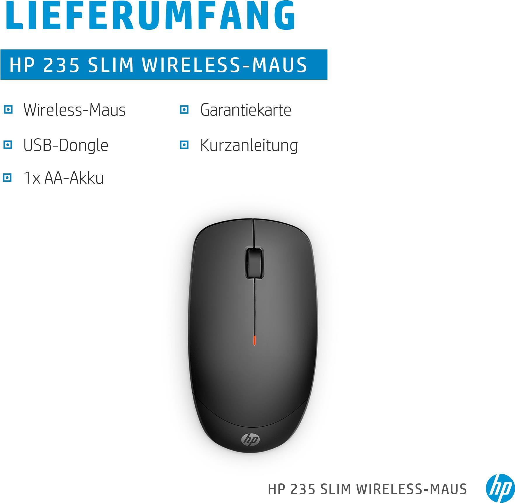 HP 235 Slim Wireless-Maus - Beidhändig - Optisch - RF Wireless - 1600 DPI - Schwarz (4E407AA)