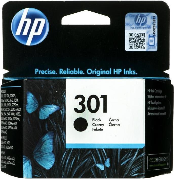 HP 301 - 3 ml - Schwarz - original - Tintenpatrone - für HP DeskJet 1000, 1010, 1050 AiO, 1050A AiO, 1510 AiO, 2000, 2050 AiO, 2050A AiO, 2510 AiO, 2540 AiO, 3000, 3050 AiO, 3050A eAiO, 3510 eAiO series, HP ENVY 4500 eAiO, 5530 eAiO series, HP OfficeJet 2620 AiO, 4630 eAiO series (CH561EE#BA3)