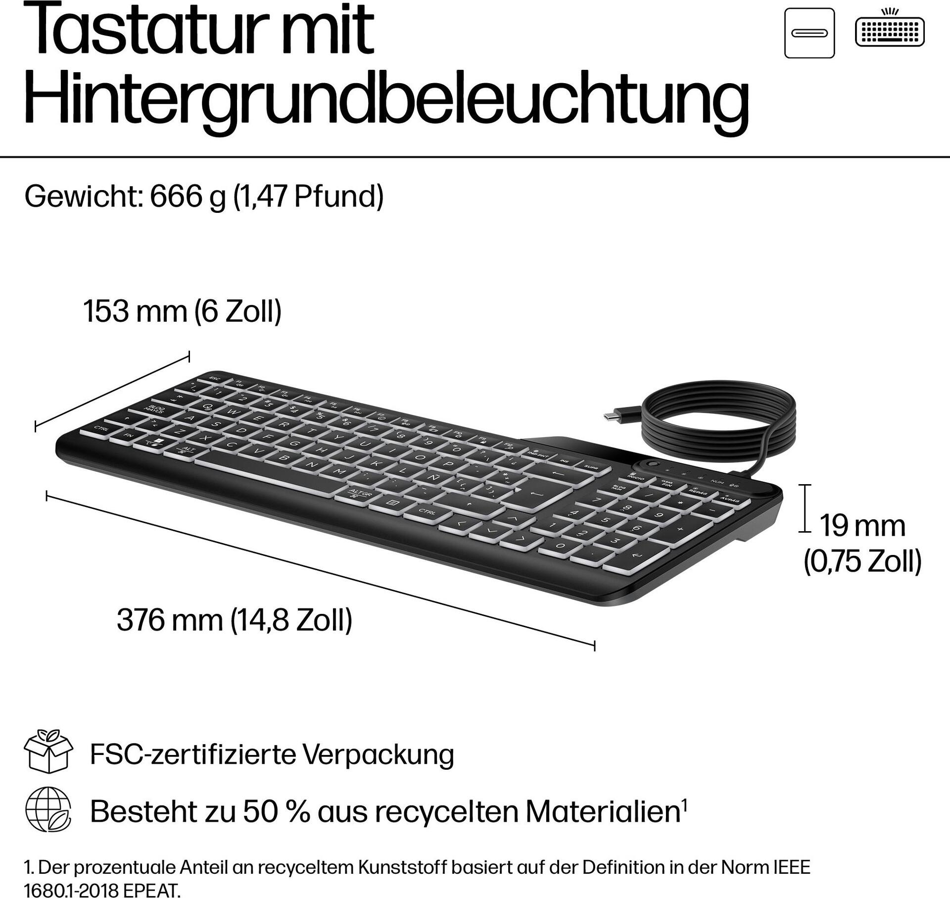 Mit warmweiß beleuchteten Tasten verpasst diese Tastatur nie einen Takt. Schließen Sie sie an Ihrem Gerät an und arbeiten Sie mit leisen Tasten und einer Hintergrundbeleuchtung durch dreistufig verstellbare LEDs. Steigern Sie ferner Ihre Produktivität mit 12 programmierbaren Tasten. Arbeiten oder gamen Sie den ganzen Tag auf der schlanken und desinfizierbaren HP 400 Tastatur mit Hintergrundbeleuchtung.