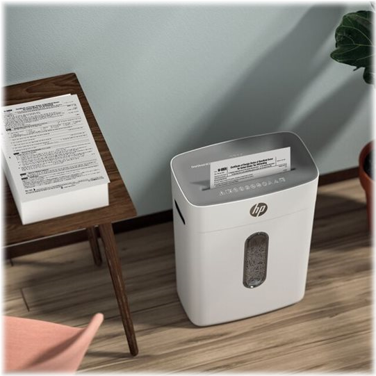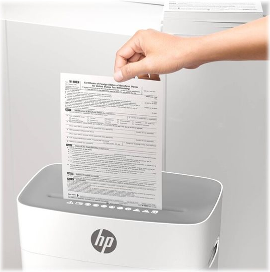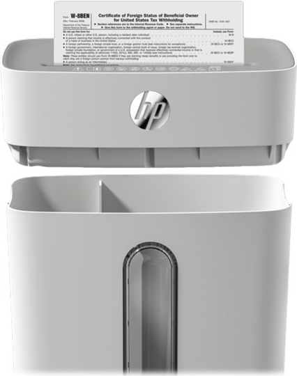HP OneShred 8CC Aktenvernichter (Sicherheitsstufe 4, Partikelschnitt 5x18mm, bis 8 Blatt 80g/m², 68dB) (2801)