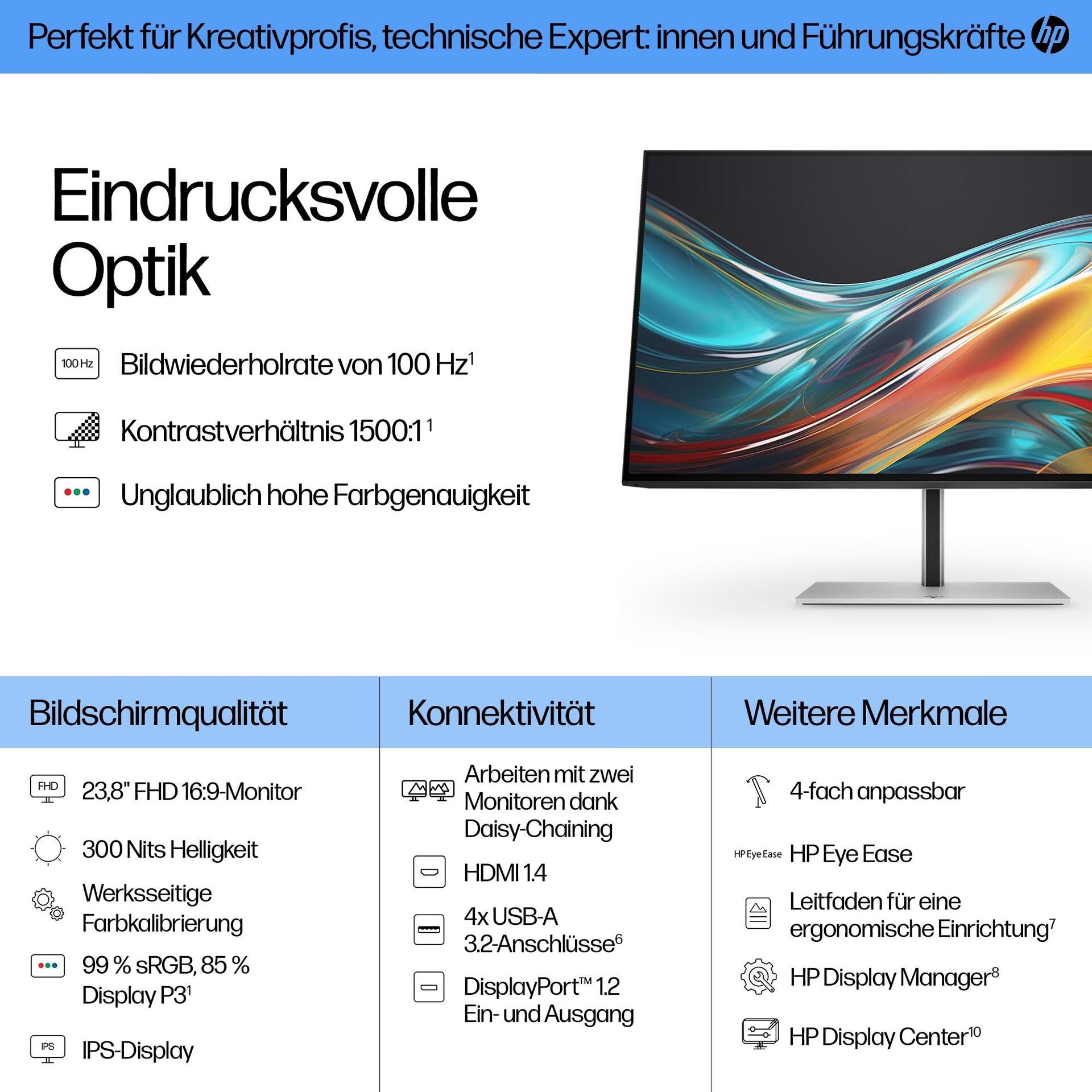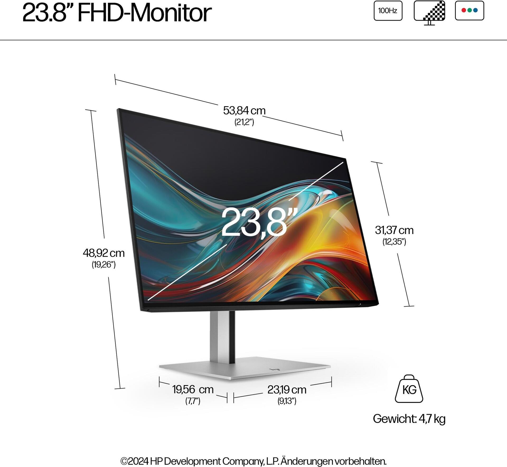 HP Serie 7 Pro 23,8 Zoll FHD-Monitor – 724pf - 60,5 cm (23.8") - 1920 x 1080 Pixel - Full HD - Schwarz - Silber (8X530AA#ABB)