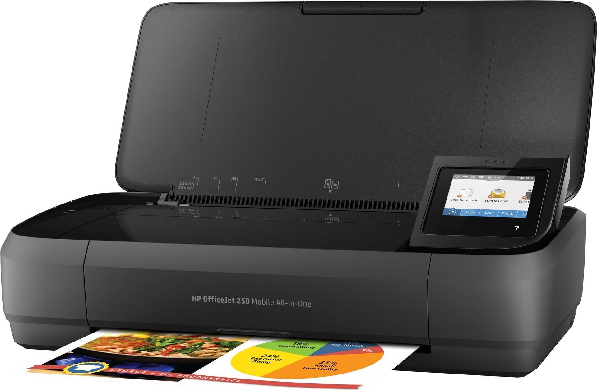Drucken, scannen und kopieren Sie von nahezu überall aus mit diesem tragbaren All-in-One. Schließen Sie Ihren Drucker ganz einfach über Wi-Fi Direct an. Dieses leise Kraftpaket verfügt über eine lange Akkunutzungsdauer und liefert so die meisten Seiten.