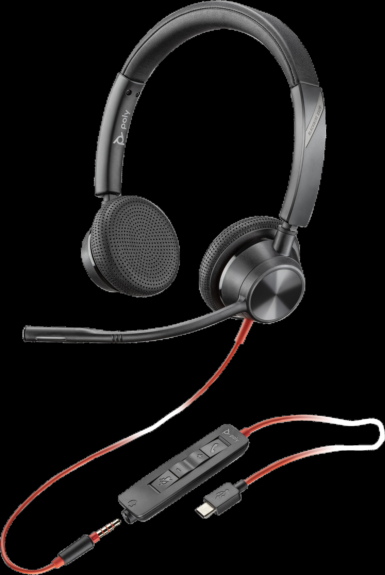 HP Poly Blackwire 3325 - Blackwire 3300 series - Headset - On-Ear - kabelgebunden - aktive Rauschunterdrückung - 3,5 mm Stecker, USB-C - Schwarz - UC-zertifiziert (8X221AA)