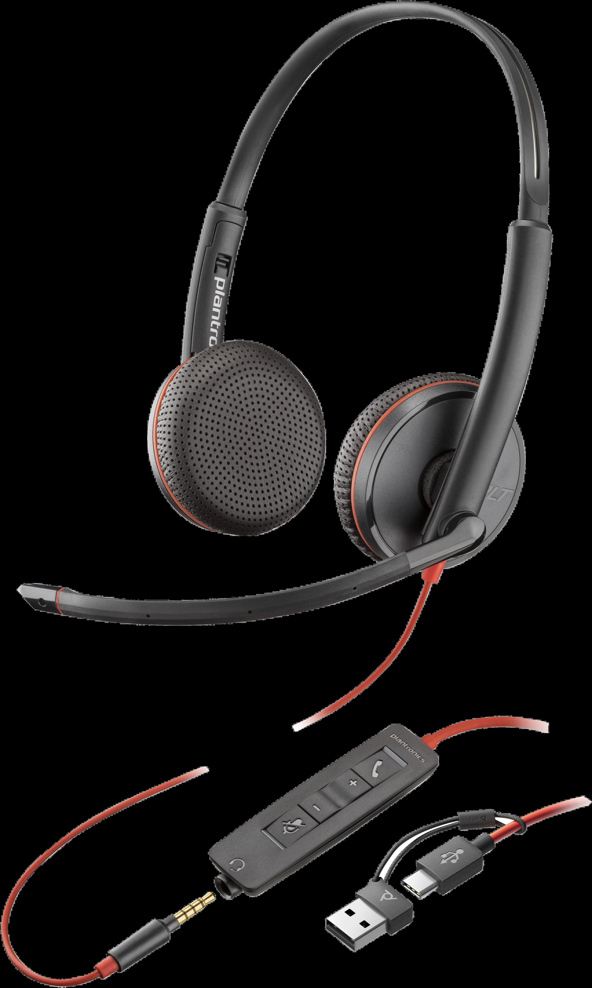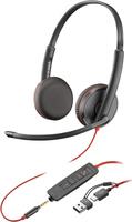 HP Poly Blackwire 3225 - Blackwire 3200 Series - Headset - On-Ear - kabelgebunden - aktive Rauschunterdrückung - 3,5 mm Stecker, USB-C - Schwarz - Zertifiziert für Skype für Unternehmen, Avaya Certified, Cisco Jabber Certified, UC-zertifiziert (8X229AA)