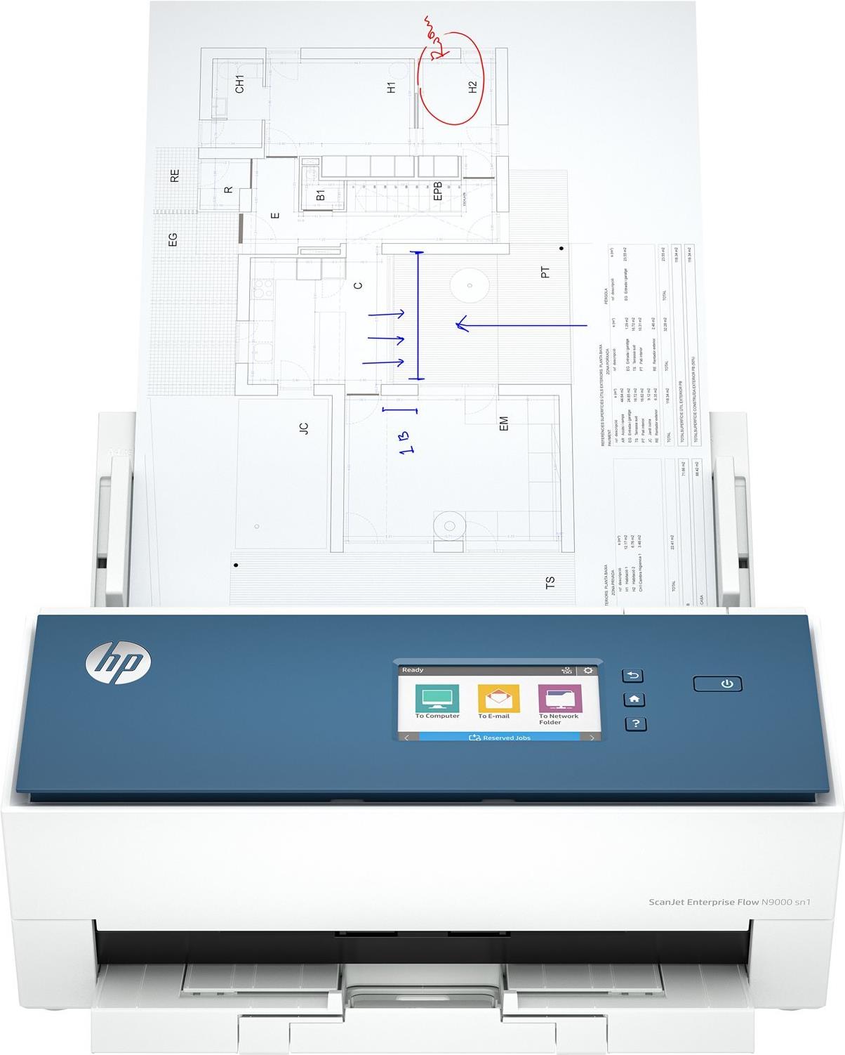 HP ScanJet Enterprise Flow N9000 sn1 eignet sich ideal zum Scannen großformatiger Dokumente, zur problemlosen Handhabung großer Volumen und zur Netzwerkkonnektivität für eine nahtlose Integration in Büroumgebungen.
