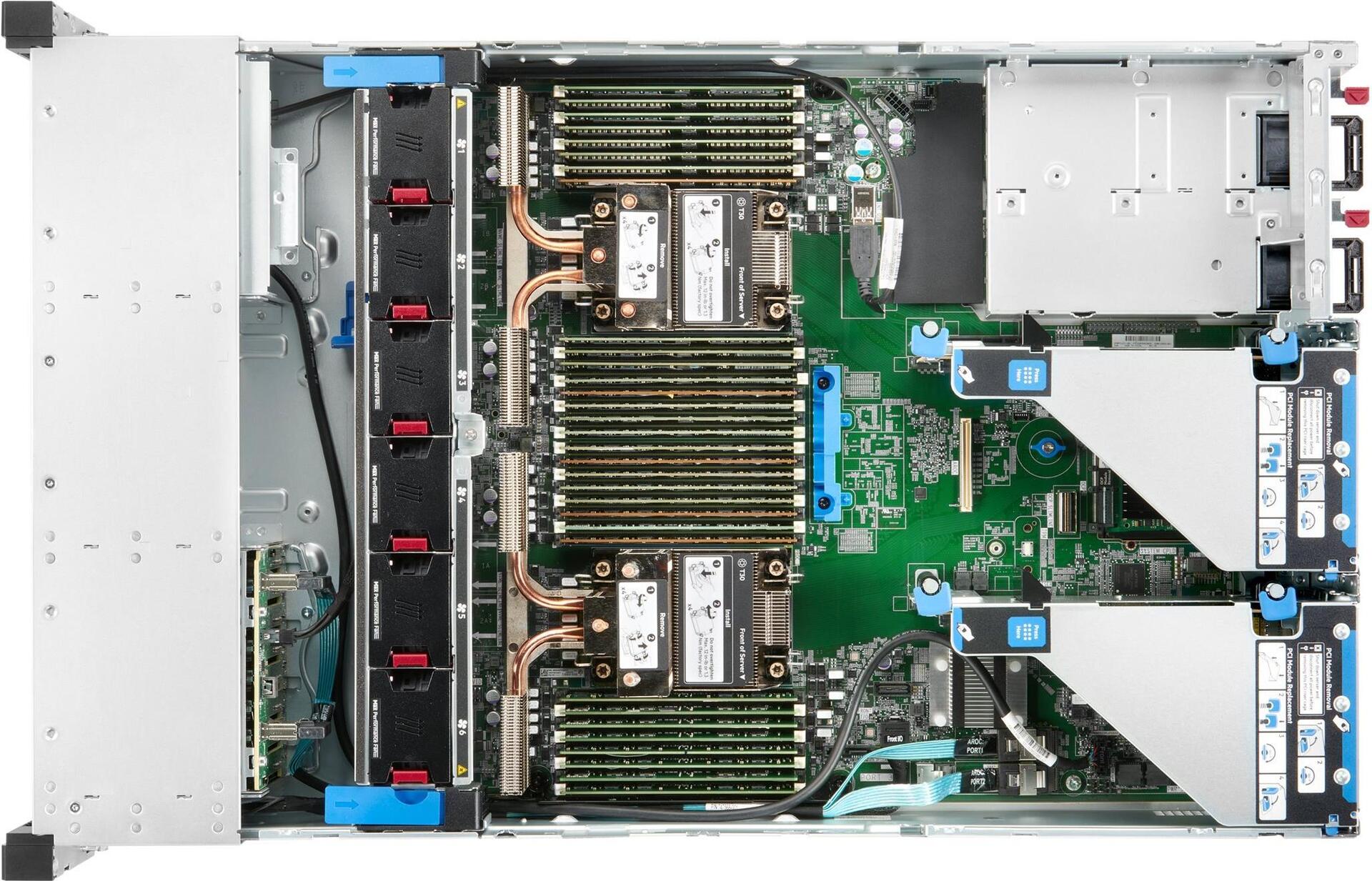 | Zubehör im Lieferumfang | CPU Standard Kühlkörper, HPE Easy Install Rails with CMA, 6 max. Performance-Lüfter |