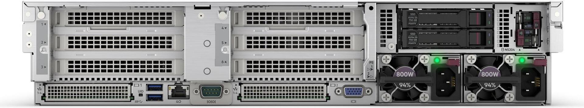 | Schnittstellen | 1 x HPE iLO (Vorderseite: 1) (Service-Port) 5 x USB 3.2 Gen 1 (1 vorn, 2 hinten, 2 intern) 1 x VGA 2 x LAN (1/10 Gigabit Ethernet) |
