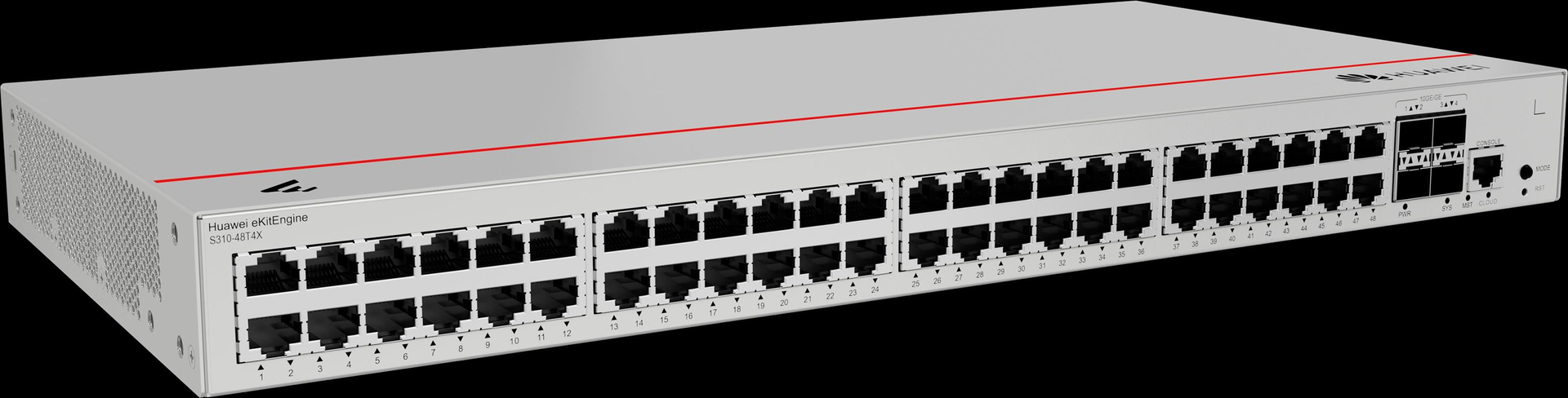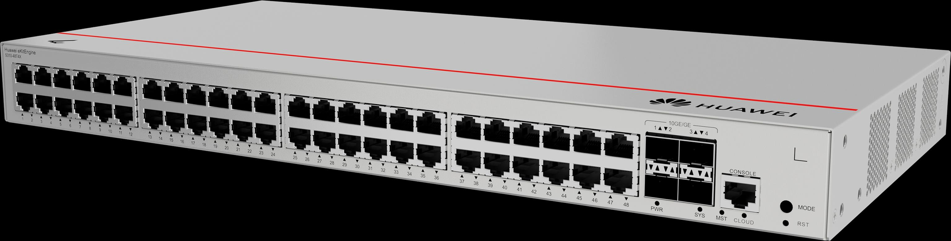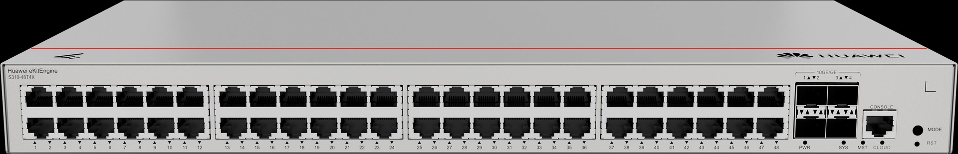 Huawei eKit Switch S310-48T4X - Diese Serie von Ethernet-Switches - basierend auf hochleistungsfähiger Hardware der neuen Generation - kann in SOHO-Szenarien sowie für den Netzwerkzugang und die Aggregation in Unternehmenscampusnetzen eingesetzt werden. > Produkttyp- Switch- ear-Kategorie (ElektroG): relevant - Kategorie 6: kleine Geräte der IT- und TK-Technik - Kleine Geräte der IT- und TK-Technik B2C> Spezifikationen- Lüfter integriert- Switch-Art: Access> Anschlüsse- Bandbreite: 10/100/1000 MBit/s- Konsolenport- Hauptporttyp: Kupfer> Funktionen- Switch managebar: Ja- Montageart: 19" Rackmontage - Desktop- IGMP> Stromversorgung- Netzteil: integriert> Grundeigenschaften- Farbe: Grau- Höhe: 43.6 mm- Länge/Tiefe: 220 mm- Breite: 442 mm (98012383)