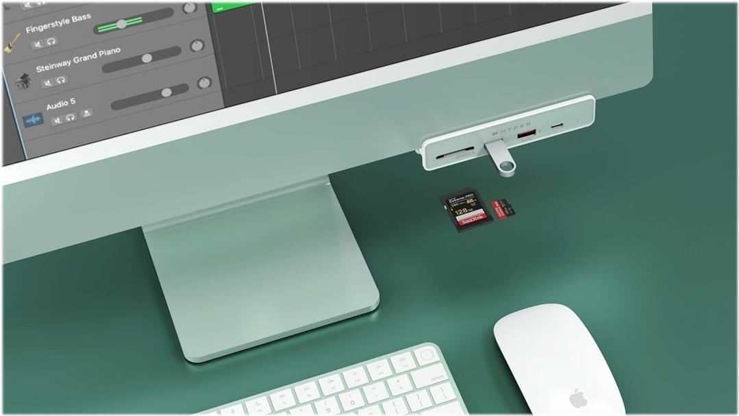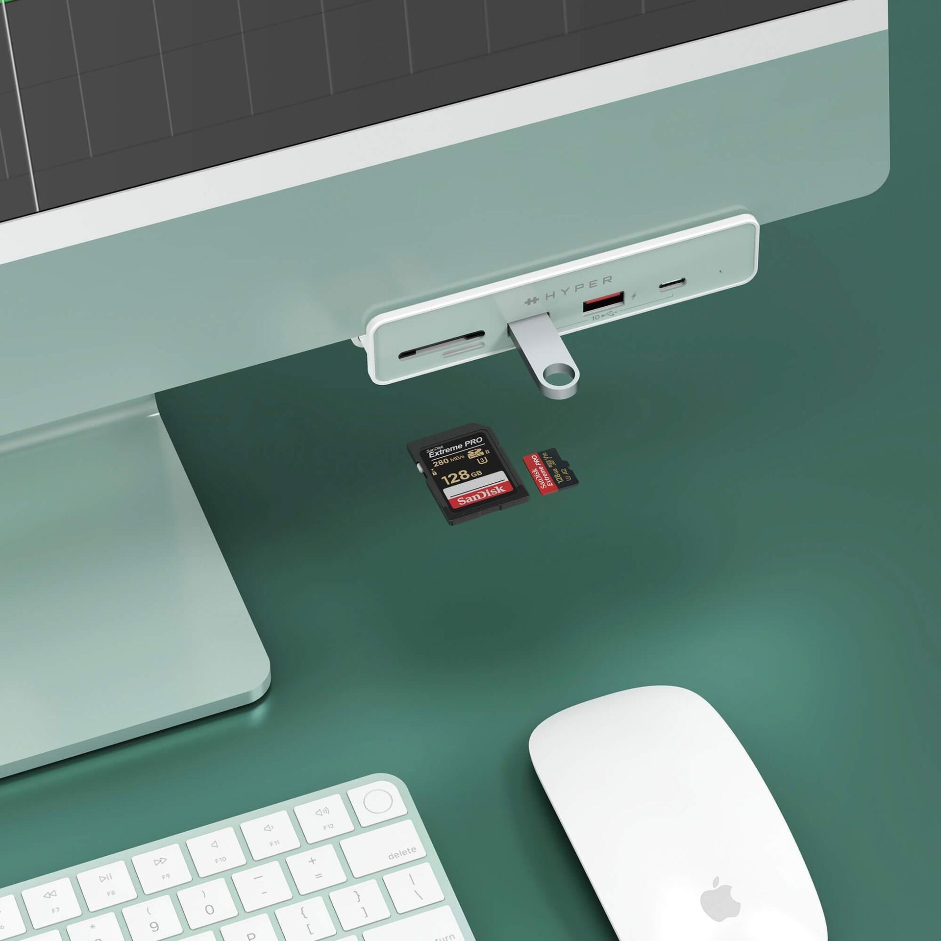 Erweitern Sie die Anschlussmöglichkeiten Ihres neuen iMac 24" mit einem einfachen USB-C-Hub zum Anklemmen, der über eine nahtlose, farblich passende Abdeckung verfügt, die für alle iMac-Farboptionen geeignet ist. Inklusive 4K HDMI und MicroSD/SD-Anschlüsse.
