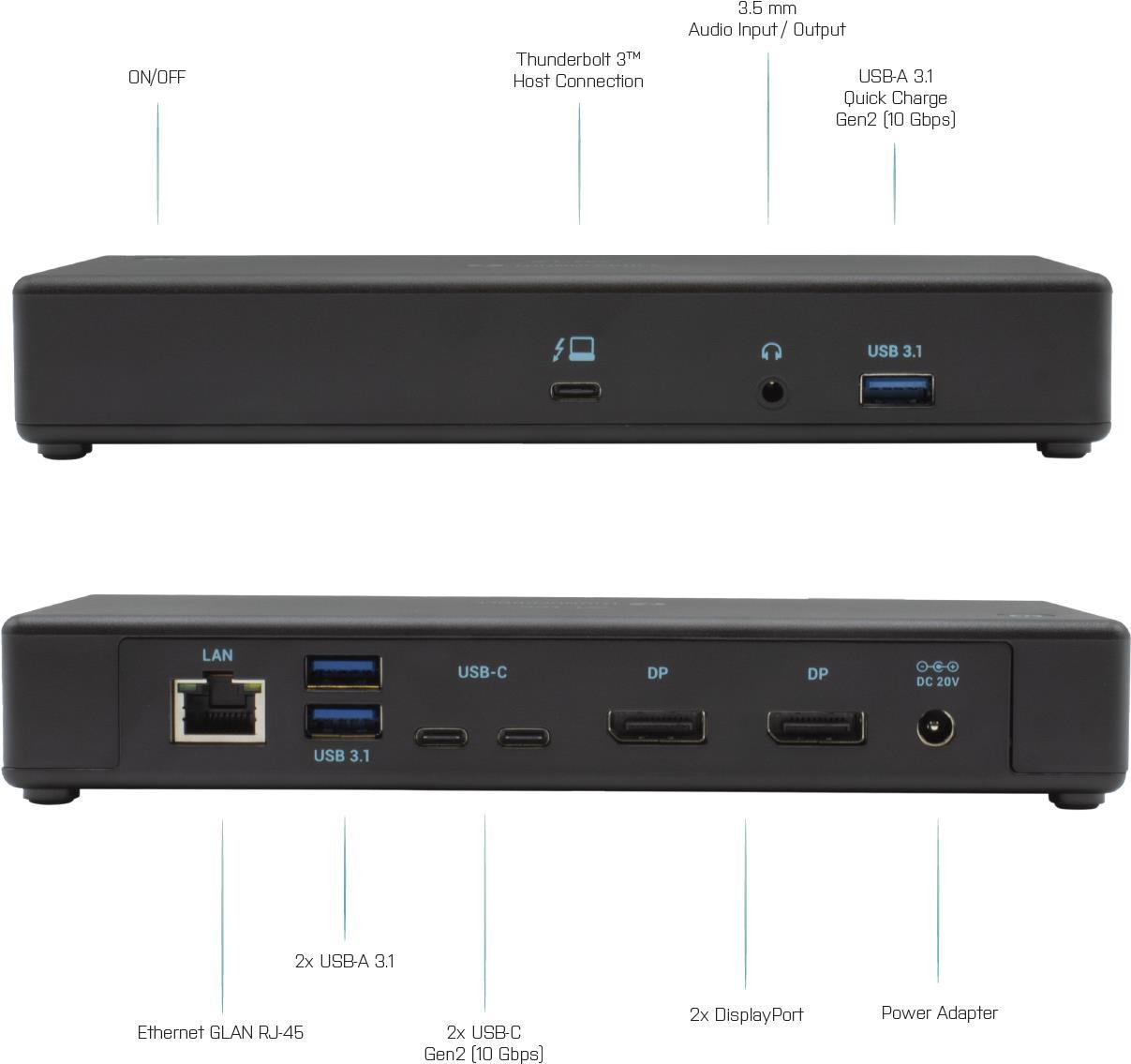 | Produktbeschreibung | i-Tec Thunderbolt3/USB-C Dual DisplayPort 4K Docking Station + Power Delivery - Dockingstation - USB-C 3.1 / Thunderbolt 3 - 2 x DP - GigE |