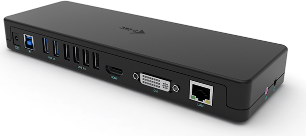 Die Station unterstützt bis zu 2x externe Monitore, die Sie über HDMI- und DVI-Anschlüsse anschließen können. 6x USB-Anschlüsse (davon zwei USB 3.0), zuverlässige und schnelle Internetverbindung dank des integrierten LAN-Anschlusses und Unterstützung für Audioeingang und -ausgang.