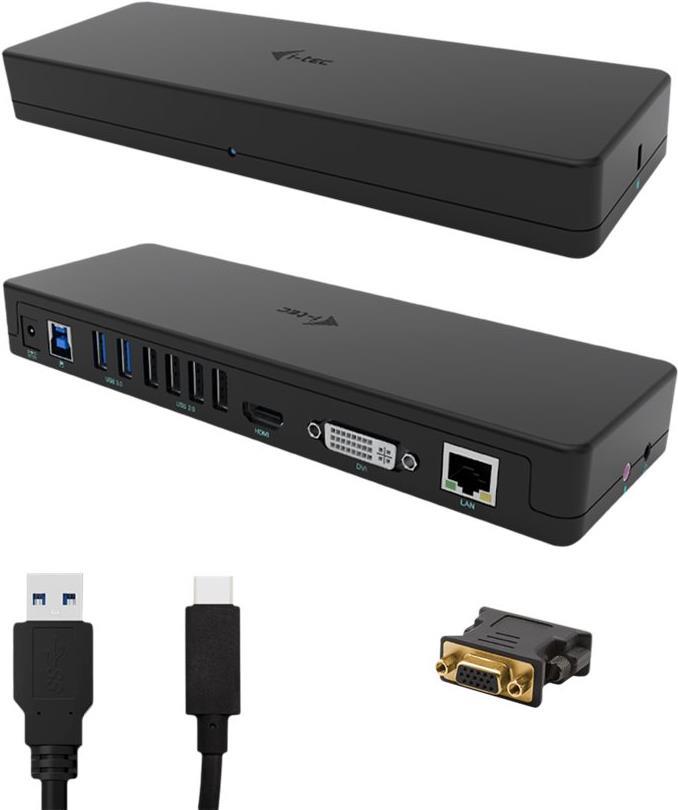 i-tec USB 3.0 / USB-C Dual Display Docking Station HDMI DVI + VGA - Verkabelt - USB 3.2 Gen 1 (3.1 Gen 1) Type-A - 3,5 mm - 10,100,1000 Mbit/s - Schwarz - Kensington (CAHDMIDVIDOCKPRO)