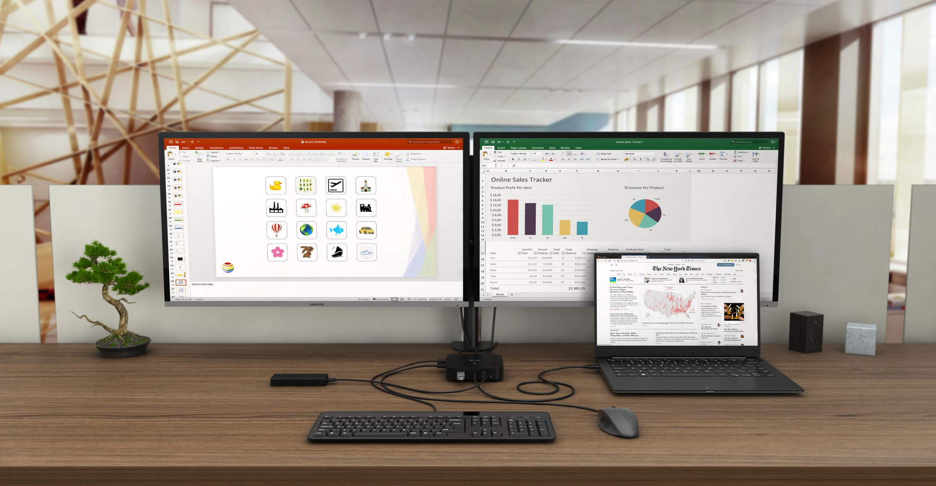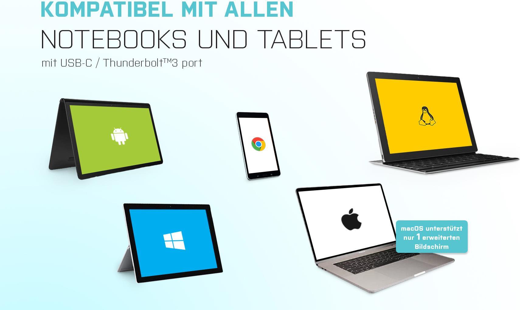 USB-C-Docking-Station fürs Büro, welche bis zu 2 externe Bildschirme mit einer Auflösung von 4 K unterstützt. Die Station ist mit jedem Notebook kompatibel, das über einen USB-C- oder Thunderbolt 3-Port verfügt. 6x USB-Port, mit dem integrierten LAN-Port zuverlässiger und schneller Anschluss ans Firmennetz, Unterstützung der Bildschirminstallation. Deswegen ist die Docking-Station ein zuverlässiger Partner für Profis. Die Stromversorgung Ihres Notebooks oder Tablets bis zu 100 W gehört natürlich dazu. Das integrierte neueste „DP 1.4“-Protokoll unterstützt eine Auflösung von 5 K/60 Hz, was Berufsgrafiker, Datenanalysten, Filmproduzenten bzw. Freunde von Videos mit hoher Auflösung zu schätzen wissen. Kompatibel mit Ihrem USB-C oder Thunderbolt 3 Notebook oder Tablet jeder Marke und Plattform. Diese Dockingstation ist mit allen Typen von Notebooks und sonstigen Geräten kompatibel, die mit USB-C / Thunderbolt 3 Schnittstelle für die Unterstützung der Videoübertragung ausgestattet sind. Drucker? Tastatur? Maus? Externe Festplatte und USB-Stick? Smartphone-Ladekabel? Schließen Sie alle Ihre Geräte schnell und einfach an die Dockingstation an. Natürlich gibt es auch die Möglichkeit, dank des LAN-Anschlusses eine Verbindung zum Internet herzustellen wodurch die unterschiedliche Qualität und Geschwindigkeit von Wi-Fi-Netzwerken beseitigt wird. Schließen Sie bis zu zwei 4K / 60Hz Monitore oder einen Monitor mit einer Auflösung von bis zu 5K / 60Hz an, um HD-Filme zu Hause zu genießen oder die Produktivität und Kreativität am Arbeitsplatz zu steigern. Laden Sie Ihr Notebook oder Tablet, während Sie über Ihren USB-C oder Thunderbolt 3 Anschluss arbeiten. Das Dock ermöglicht das Laden von bis zu 85 Watt. Dockingstation enthält auch 1x USB 3.0 unterstützt schnelle Ladefunktion (BC 1.2). Ein komfortabler, sauberer und effizienter Arbeitsplatz ist ein wesentlicher Bestandteil jedes odernen Büros. Mit der intelligenten Verwendung des VESA-Standards können Sie Ihren Schreibtisch jetzt viel besser organisieren und die Größe Ihrer verfügbaren Arbeitsfläche effektiv erhöhen. Kompatibel mit i-tec VESADOCK1. Windows Benutzer? Sichern Sie regelmäßig Ihre Dokumente, Fotos oder Videos? Installieren Sie unsere kostenlose App i-tec Docker Pro (i-tec.cz/dockerpro) und Sie können sofort mit dem Backup beginnen. Schließen Sie eine beliebige Festplatte, einen USB-Stick oder einen Flash-Speicher an die Dockingstation an, und der Rest ist nur ein paar Mausklicks entfernt.