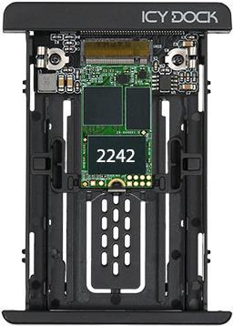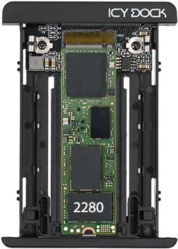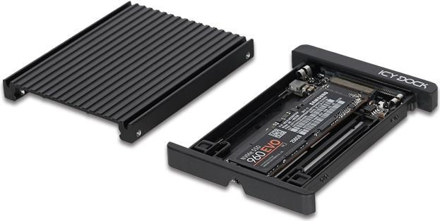 ICY DOCKs EZConvert MB705M2P-B ist die Komplettlösung um eine M.2 PCIe NVMe SSD in eine handelsübliche 2,5 Zoll U.2 (SFF-8639) NVMe SSD mit exakten Abmessungen, Anschlussposition und Montagebohrungen umzuwandeln. Entwickelt mit einem Blick auf hohe Kompatibilität nimmt dieser Adapter alle M.2 Größen von 30mm bis 80mm Länge auf (2230 / 2242 / 2260 / 2280) und erlaubt eine Installation ohne Schrauben oder Werkzeuge. So wird eine mühelose Installation in jeglichen 2,5 Zoll U.2 NVMe Backplanes, Hot Swap Slots und 2,5 Zoll Einbaurahmen sowie ICY DOCKs eigenen U.2 NVMe SSD Wechselrahmen ermöglicht. Das solide Aluminiumgehäuse schützt die empfindlichen M.2 SSDs vor Stößen und Stürzen und agiert gleichzeitig als Kühlkörper im Zusammenspiel mit den inklusiven Wärmeleitpads. So bleiben Ihre SSDs auch unter hohen Belastungen kühl und leistungsstark.Produkttext[/head]ICY DOCKs EZConvert MB705M2P-B ist die Komplettlösung um eine M.2 PCIe NVMe SSD in eine handelsübliche 2,5 Zoll U.2 (SFF-8639) NVMe SSD mit exakten Abmessungen, Anschlussposition und Montagebohrungen umzuwandeln. Entwickelt mit einem Blick auf hohe Kompatibilität nimmt dieser Adapter alle M.2 Größen von 30mm bis 80mm Länge auf (2230 / 2242 / 2260 / 2280) und erlaubt eine Installation ohne Schrauben oder Werkzeuge. So wird eine mühelose Installation in jeglichen 2,5 Zoll U.2 NVMe Backplanes, Hot Swap Slots und 2,5 Zoll Einbaurahmen sowie ICY DOCKs eigenen U.2 NVMe SSD Wechselrahmen ermöglicht. Das solide Aluminiumgehäuse schützt die empfindlichen M.2 SSDs vor Stößen und Stürzen und agiert gleichzeitig als Kühlkörper im Zusammenspiel mit den inklusiven Wärmeleitpads. So bleiben Ihre SSDs auch unter hohen Belastungen kühl und leistungsstark.Hot-Plug UnterstützungDa M.2 SSDs nicht für Hot Swap Wechsel entwickelt wurden sind ihre Anschlüsse besonders empfindlich und für gewöhnlich auf nur 250 Steckzyklen ausgelegt. Mit dem EZConvert MB705M2P-B können M.2 PCIe NVMe SSDs allerdings per Hot Plug gewechselt werden ohne die internen Anschlüsse zu beanspruchen. Stattdessen wird der von ICY DOCK verwendete und mit 10.000 Steckzyklen bewertete Anschluss verwendet. Hot Plug Wechsel erlauben müheloses Hinzufügen, Entnehmen und Austauschen von Laufwerken ohne dabei das System neu starten zu müssen.Perfekte KompatibilitätEZConvert MB705M2P-B nimmt alle 30mm-80mm M.2 PCIe NVMe SSDs (2230 / 2242 / 2260 / 2280) auf und verfügt über exakte Abmessungen, Anschlussposition und Montagebohrungen wie eine handelsübliche 9,5mm U.2 NVMe SSD.Der aus einem Stück gefertigte Kühlkörper der gleichzeitig auch als Oberseite agiert kann ohne Schrauben oder Werkzeuge aufgesteckt und abgenommen werden und erlaubt so eine einfache, sekundenschnelle Installation der SSD.Die einstellbare M.2 Verriegelung lässt sich verschieben um alle herkömmlichen M.2 PCIe NVMe SSD Längen inklusive 2230 (30mm), 2242 (42mm), 2260 (60mm) und 2280 (80mm) aufzunehmen. Die Verriegelung klingt sich hierbei in das Schraubenloch der SSD und fixiert diese so ohne Schrauben zu benötigen. So sparen Sie sich den Aufwand den kleinen, leicht zu verlierenden, Schrauben handhaben zu müssen und schützen die SSD gleichzeitig vor Vibrationen und Erschütterungen.Da der MB705M2P-B das standardisierte 2,5 Zoll U.2 Format verwendet kann er in jeder U.2 Backplane, jedem Hot Swap Slot oder 2,5 Zoll Einbaurahmen oder in ICY DOCKs U.2 NVMe SSD Wechselrahmen verwendet werden.Vollgepackt mit FeaturesDer Aluminiumdeckel dient sowohl dem Schutz der empfindlichen M.2 SSD vor Stößen und Stürzen als auch der effektiven passiven Kühlung um Ihre NVMe SSDs auch bei hoher Belastung in sicheren Temperaturen betreiben zu können.Das inklusive Wärmeleitpad kann an die Unterseite des Aluminiumdeckels geklebt werden um für zusätzliche Wärmeableitung zu sorgen.Für weitergehende Kühlleistung kann das untere Element mit den Lüftungsöffnungen herausgetrennt werden um so Platz für einen M.2 Kühlkörper zu schaffen oder mehr Luftstrom zu ermöglichen.Der MB705M2P-B unterstützt die volle NVMe Bandbreite bis zu 32Gbps und erlaubt so die uneingeschränkte Nutzung der schnellsten M.2 NVMe SSDs.[head]Hauptmerkmale