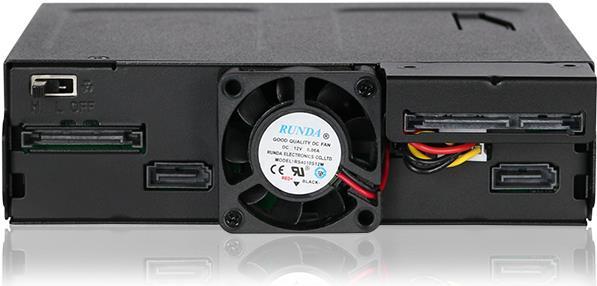 Mit dem ToughArmor MB602SPO-B stellt ICY DOCK einen robusten Hot Swap Wechselrahmen für 2x SATA/SAS SSDs und HDDs von bis zu 15 mm Bauhöhe und 1x Slim 12,7 mm oder Ultra-Slim 9,5 mm CD/DVD/Blu-ray ROM Laufwerk in einem 5,25" Einbauschacht vor. Dieser ist komplett aus Metall gefertigt und entwickelt für kommerzielle Anwendungen in militärischen oder medizinischen Systemen, PCs in Luft- und Seefahrt, in-vehicle Systemen, Servern, Workstations und mobilen Computern. Sorgen Sie für optimale Betriebstemperaturen mit dem einstellbaren 40 mm Lüfter und zahlreichen Lüftungsöffnungen. Entnehmbare Trays / Einschübe mit Vibrationsschutz schützen Ihre Laufwerke selbst in widrigen Betriebsumgebungen und die individuellen Status-LEDs geben Ihnen jederzeit den vollen Überblick über Ihre Laufwerke.