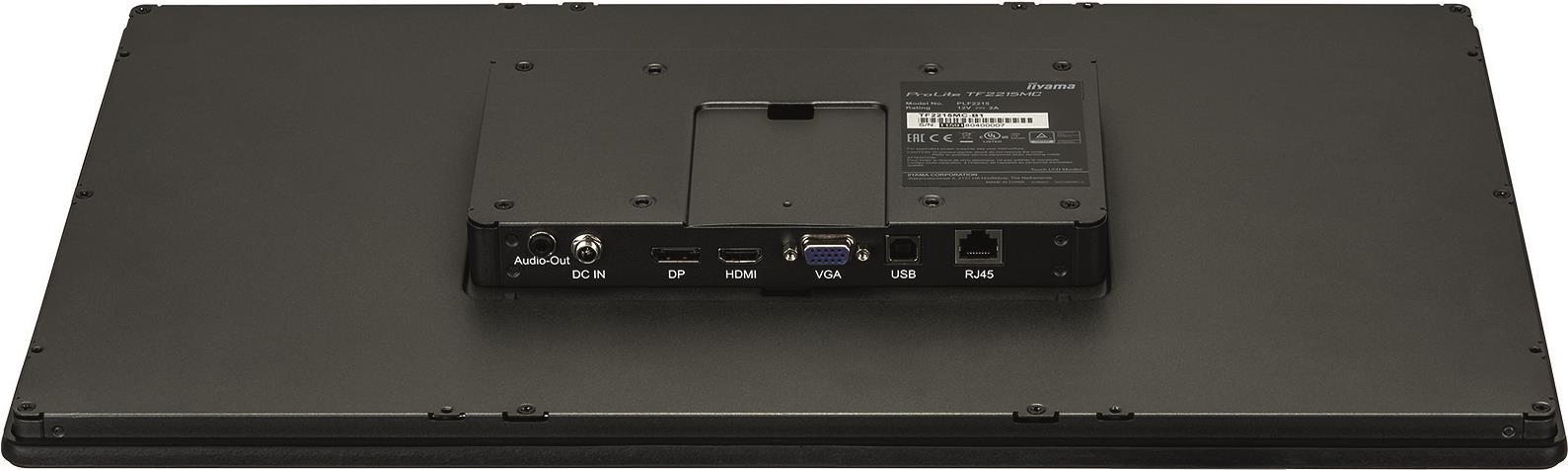 iiyama ProLite TF2215MC-B2, 54,6cm (21.5"), Projected Capacitive, 10 TP, Full HD, Kit (USB), schwarz Touchmonitor (open-frame, 16:9), Bildschirmdiagonale: 54,6 cm (21.5"), Touchscreen, Projected Capacitive, Multi Touch (10 Punkte), 1920x1080 Pixel, VESA Mount (100x100 mm), Reaktionszeit: 14ms, Helligkeit 315cd, Blickwinkel 178/178°(H/V), Kontrast: 1000:1, Audio, VGA, Display-Port, HDMI, Touchinterface: USB, inkl.: Kabel (USB, HDMI, Display Port), Netzteil, Netzkabel, QSG, separat bestellen: Adapter, IP65, Farbe: schwarz (TF2215MC-B2)