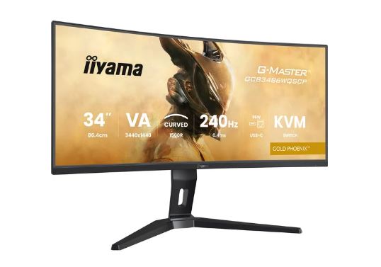 • Iiyama G-Master GCB3486WQSCP-B1 GOLD PHOENIX, Gaming-Monitor - (86.4 cm (34 Zoll), schwarz, WQHD, Curved, VA, Free-Sync Premium, USB-C, 240Hz Panel) [Energieklasse F] (GCB3486WQSCP-B1)
