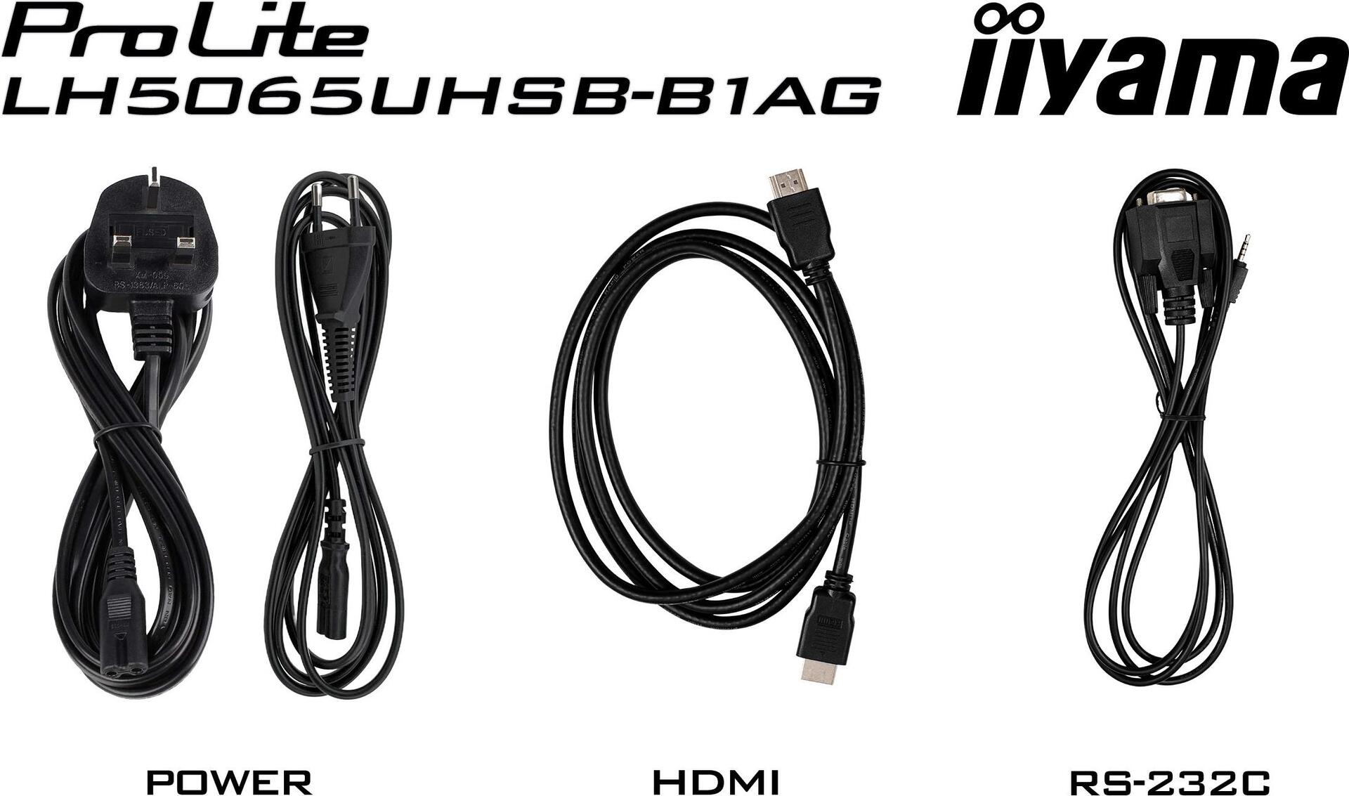 iiyama ProLite LH5065UHSB-B1AG, 125,7cm (49,5''), 4K, USB, RS232, Ethernet, WLAN, Android, Kit (RS232), schwarz TFT Monitor, 16:9, Bildschirmdiagonale: 125,7 cm (49,5''), Auflösung: 3840x2160 Pixel, VESA Mount (400x400 mm), Lautsprecher, Reaktionszeit: 9.5ms, Helligkeit 800 cd, Blickwinkel 178/178°(H/V), Kontrast: 5000:1, USB, RS232, Ethernet, WLAN (802.11ac), Audio, Display-Port, HDMI, Android (11), inkl.: Kabel (RS232, HDMI), Netzteil, Netzkabel, Fernbedienung, QSG, Farbe: schwarz (LH5065UHSB-B1AG)