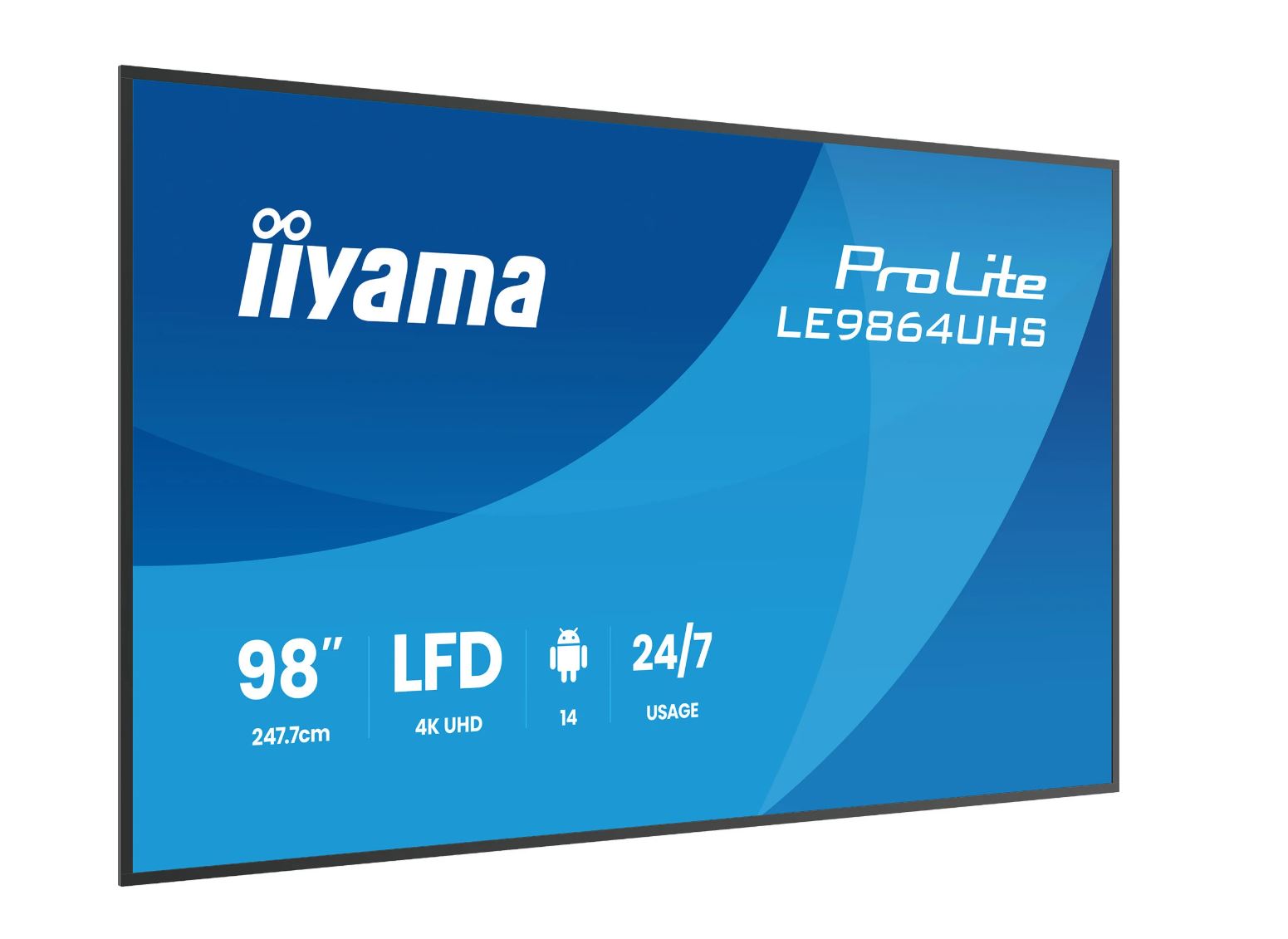 iiyama ProLite LE9864UHS-B1AG, 24/7, 247,7cm (98''), 4K, USB, USB-C, RS232, Ethernet, WLAN, Android, Kit (RS232) TFT Monitor, 16:9, Bildschirmdiagonale: 247,7 cm (98''), Auflösung: 3840x2160 Pixel, Lautsprecher, Reaktionszeit: 6,5ms, Helligkeit 500cd, Blickwinkel 178/178°(H/V), Kontrast: 5000:1, Antiglare, Anschluß: USB, USB-C, RS232, Ethernet, WLAN, Audio, HDMI, RAM: 4GB, Flash: 32 GB, OS: Android (14), inkl.: Kabel (RS232, HDMI), Netzteil, Netzkabel, Fernbedienung, Wandmontage Kit, QSG (LE9864UHS-B1AG)