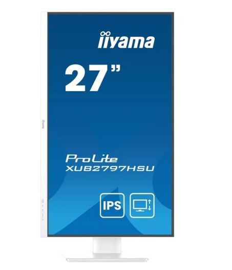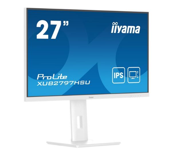 iiyama ProLite XUB2797HSU 27" Full HD IPS Display weiß 68.5cm (27"), 1920 x 1080 IPS 100Hz, 1ms, HDMI, DisplayPort, Lautsprecher 2x 2W, VESA 100 x 100, höhenverstellbar, neigbar, Pivot, drehbar, EEK: E (22kWh/1000h, 69cm), 2x USB3.2 Gen1 Hub [Energieklasse E] (XUB2797HSU-W2)