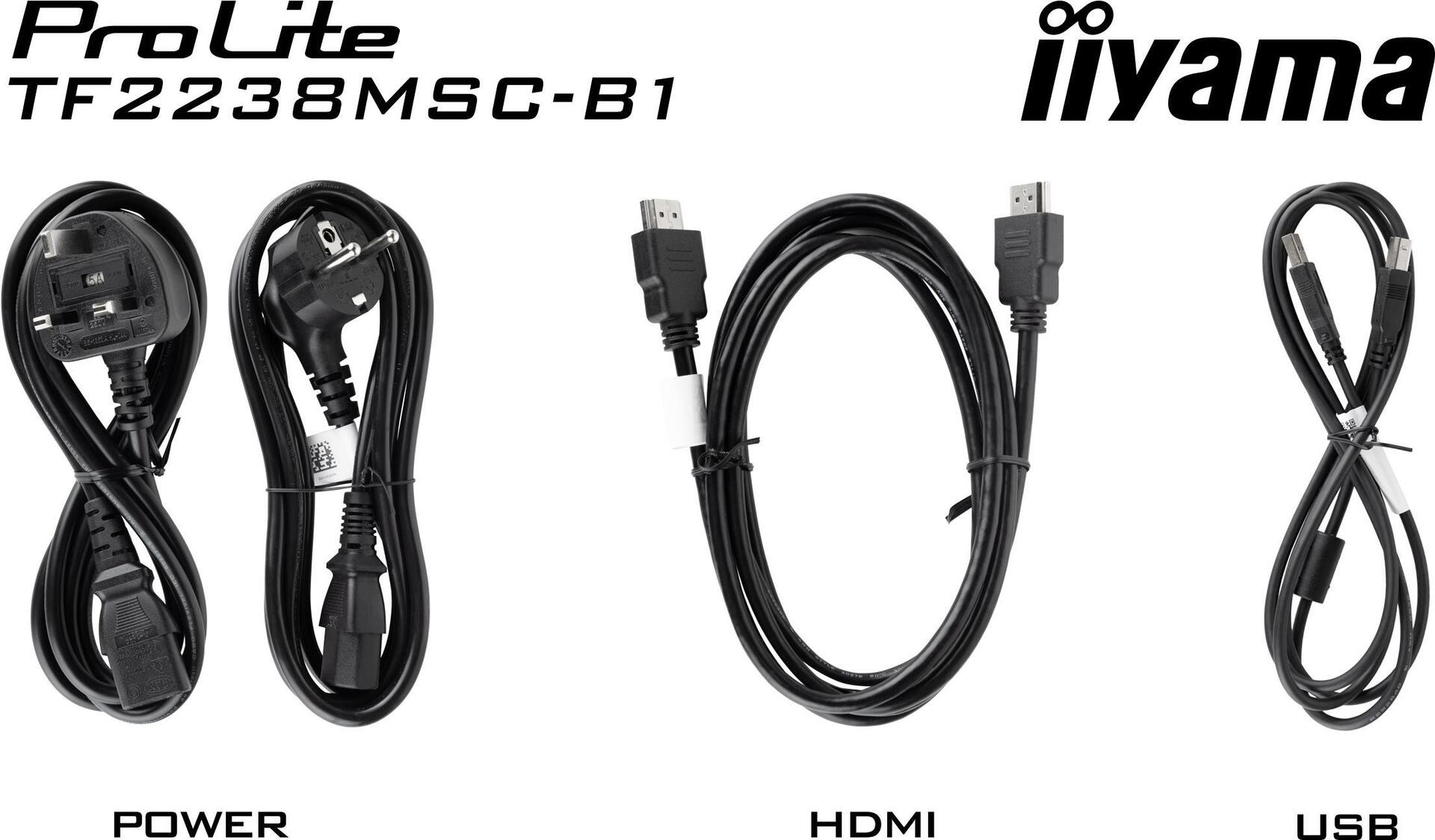 iiyama ProLite TF2238MSC-B1, 54,6cm (21,5''), Projected Capacitive, 10 TP, Full HD, USB, Kit (USB), schwarz Touchmonitor (open-frame, 16:9), 54,6 cm (21,5''), Projected Capacitive, Multi Touch (10 Punkte), 1920x1080 Pixel, VESA Mount (100x100 mm), Reaktionszeit: 5ms, Helligkeit 600cd, Blickwinkel 178/178°(H/V), 1000:1, USB (2x), Display-Port, HDMI, inkl.: Kabel (USB, HDMI), Netzteil, Netzkabel, QSG, Farbe: schwarz (TF2238MSC-B1)