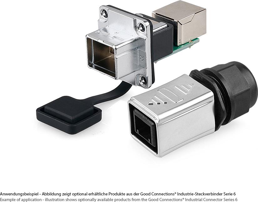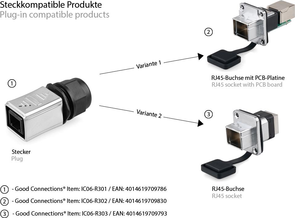 Industrie-Steckverbinder S6 - RJ45 Durchführungskupplung mit PCB-Platine / Leiterplatte, RJ45 Buchse (IC06-R302)