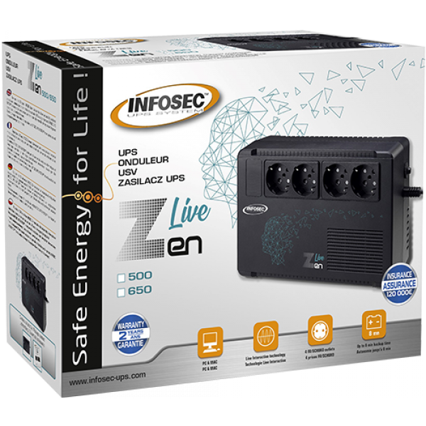 Merkmale USV-Topologie Line-Interaktiv Ausgangskapazität 0,65 kVA Ausgangsleistung 390 W Wellenform Sine Eingangs-Betriebsspannung ...
