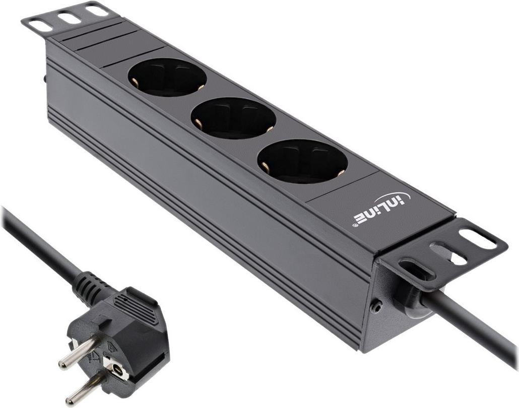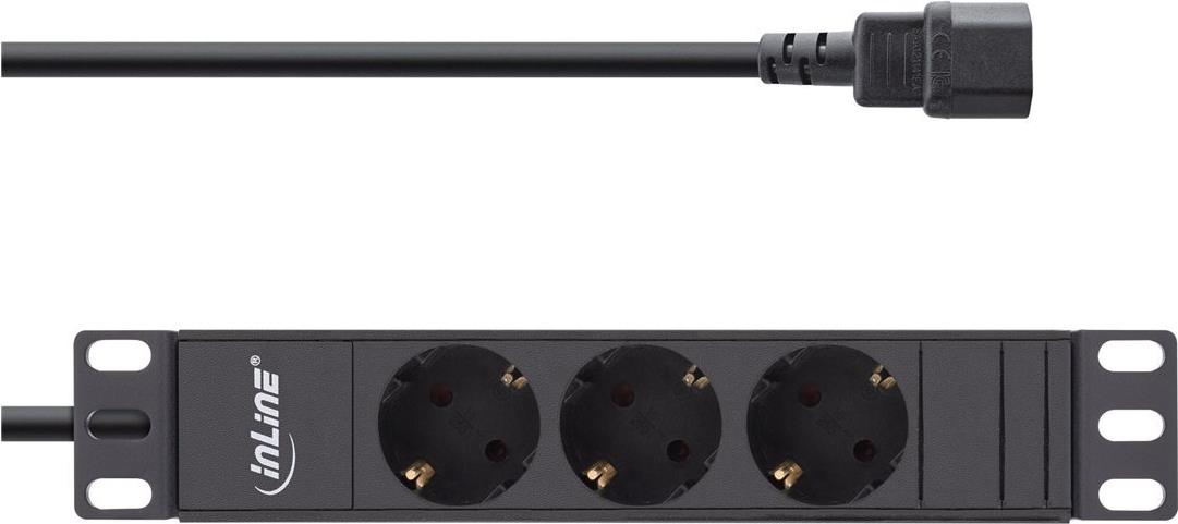 InLine 25,40cm (10") Steckdosenleiste - 3-fach Schutzkontakt - C14 Anschluss - ohne Schalter (16421I)