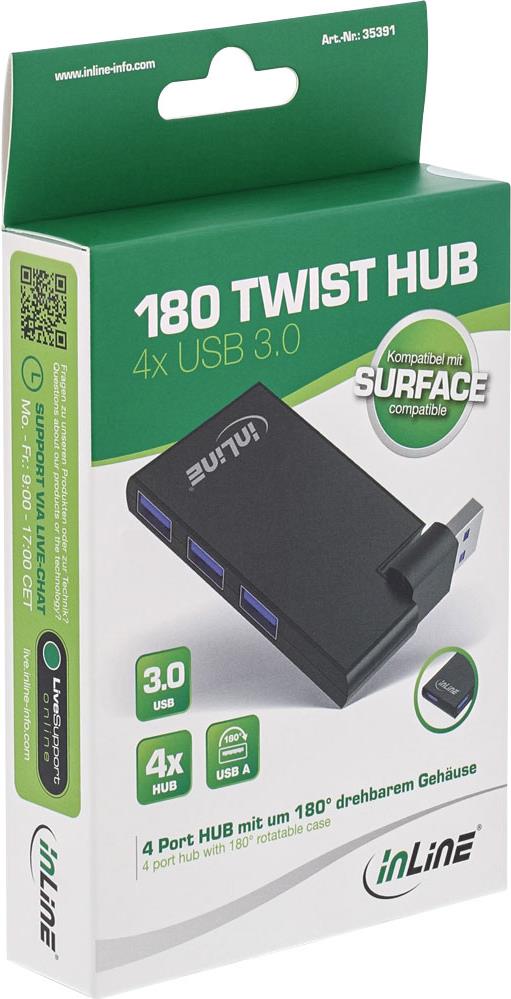 InLine 180 Twist Hub USB 3.0 - 4 Port - drehbar - schwarz USB 3.0 (3.1 Gen 1) Type-A 5000Mbit/s Schwarz Schnittstellenhub (35391)