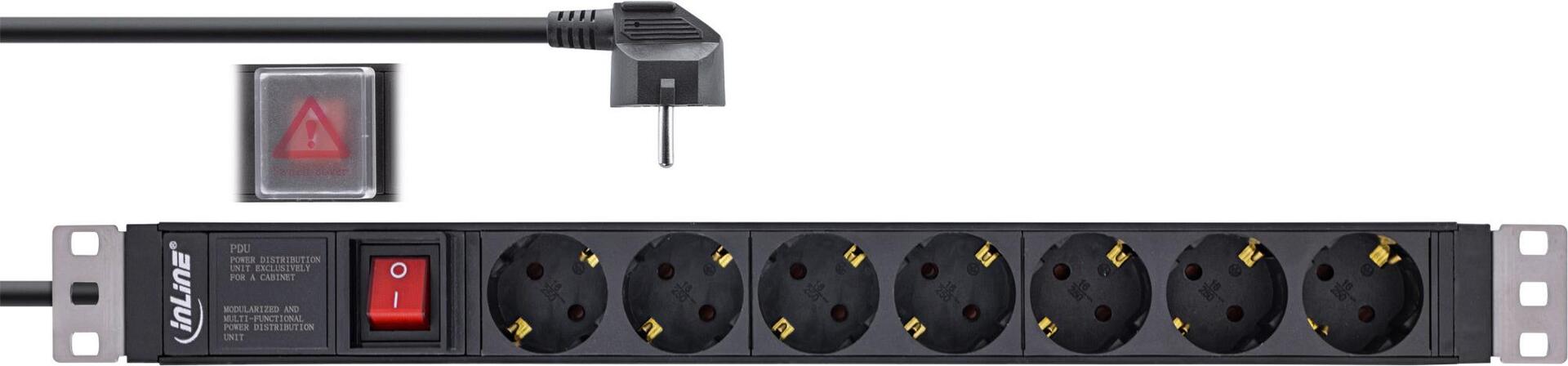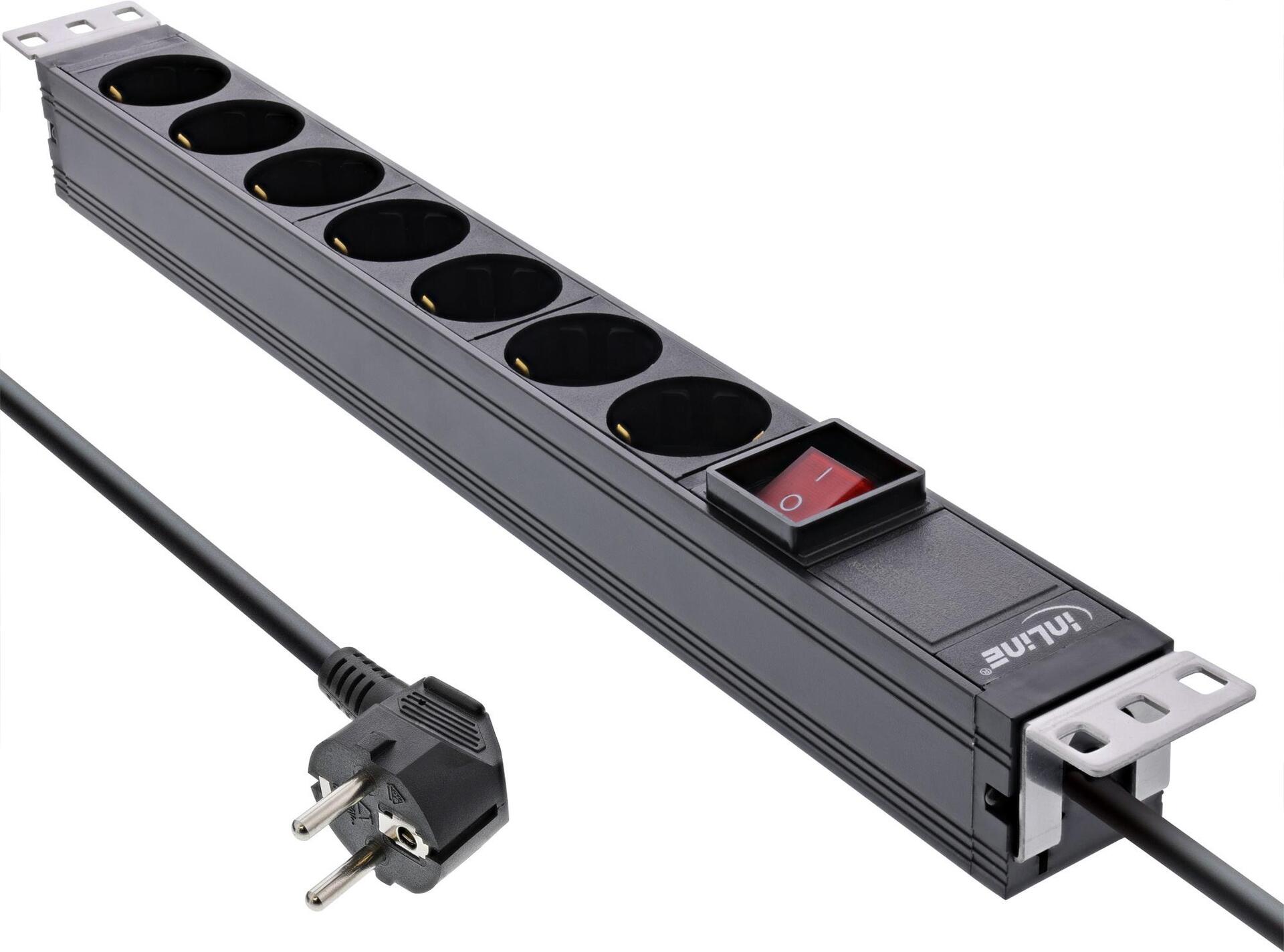 InLine® 19" Steckdosenleiste, 7-fach Schutzkontakt, mit Schalter, 2m, schwarz (16411S)