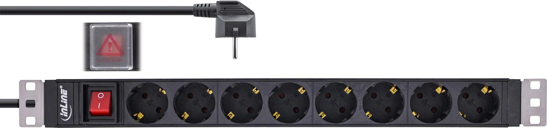 Steckdosenleiste mit 8 Steckdosen zum Einbau in den 19" Netzwerkschrank• 8-fach Steckdosenleiste mit Schalter