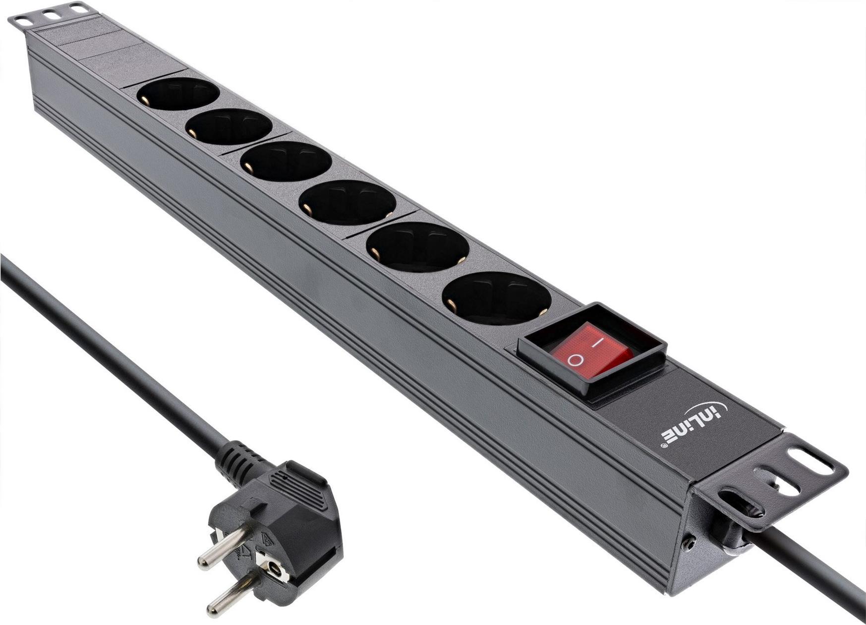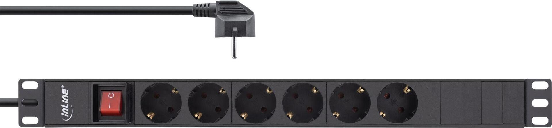 InLine® 48,30cm (19") Steckdosenleiste, 6-fach Schutzkontakt, mit Schalter, 2m, schwarz (16415S)