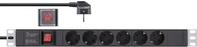 Steckdosenleiste mit 6 Steckdosen zum Einbau in den 19\" Netzwerkschrank• 6-fach Steckdosenleiste mit Schalter• Die 19\"-Winkel lassen sich in 8 Positionen an die Leiste aufstecken, dadurch ist eine individuellere Montage im Schrank möglich• ...