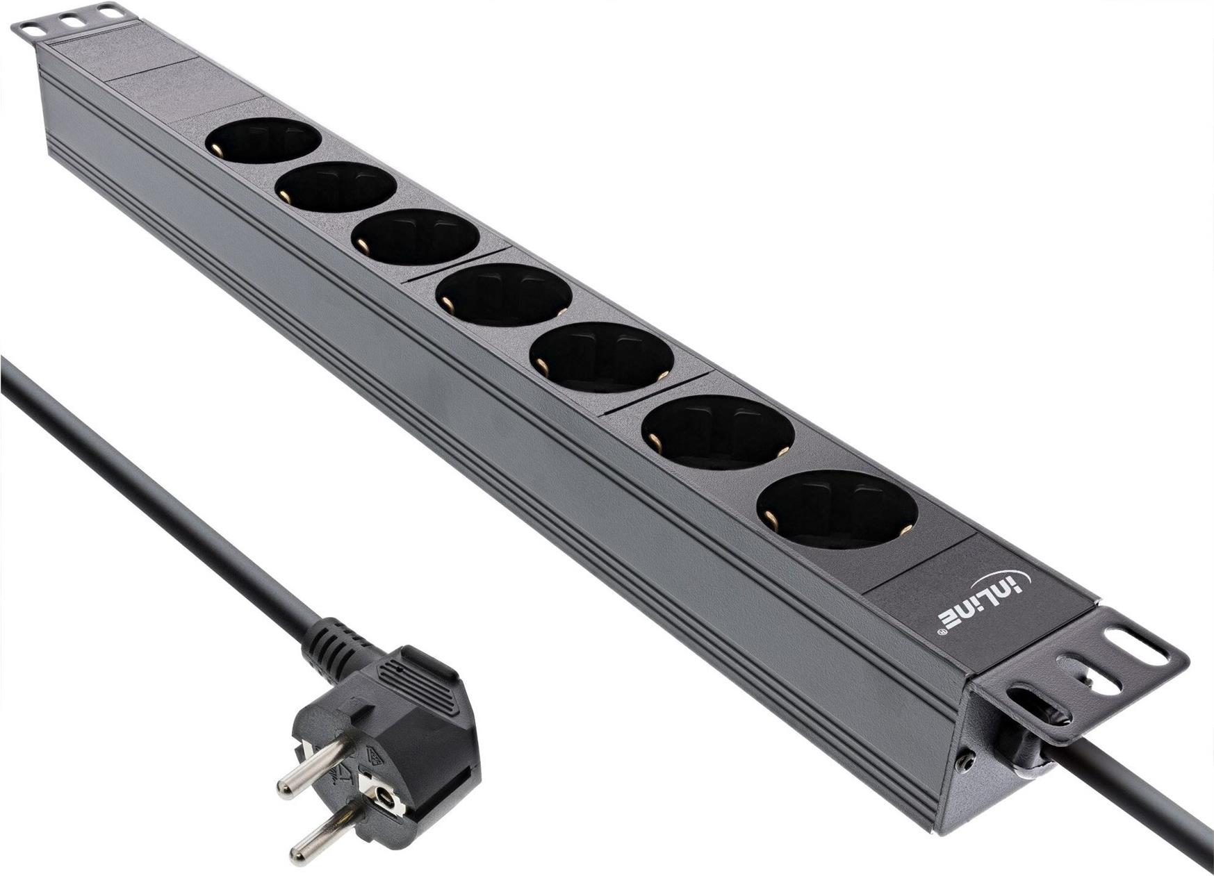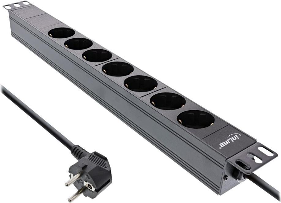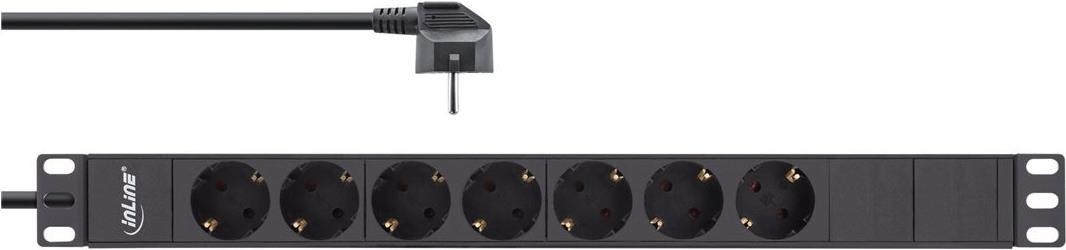 InLine® 48,30cm (19") Steckdosenleiste, 7-fach Schutzkontakt, ohne Schalter, 2m, schwarz (16417I)