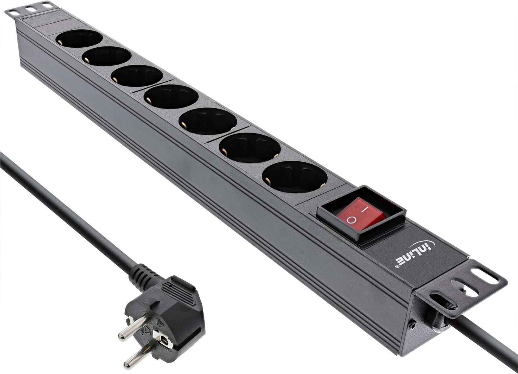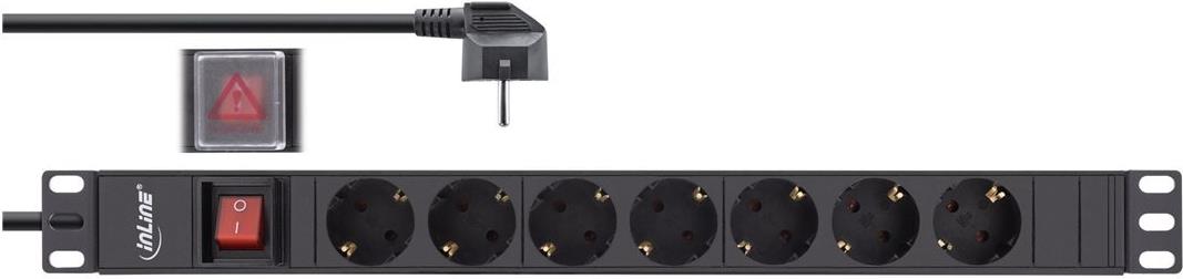 InLine® 48,30cm (19") Steckdosenleiste, 7-fach Schutzkontakt, mit Schalter, 2m, schwarz (16417S)