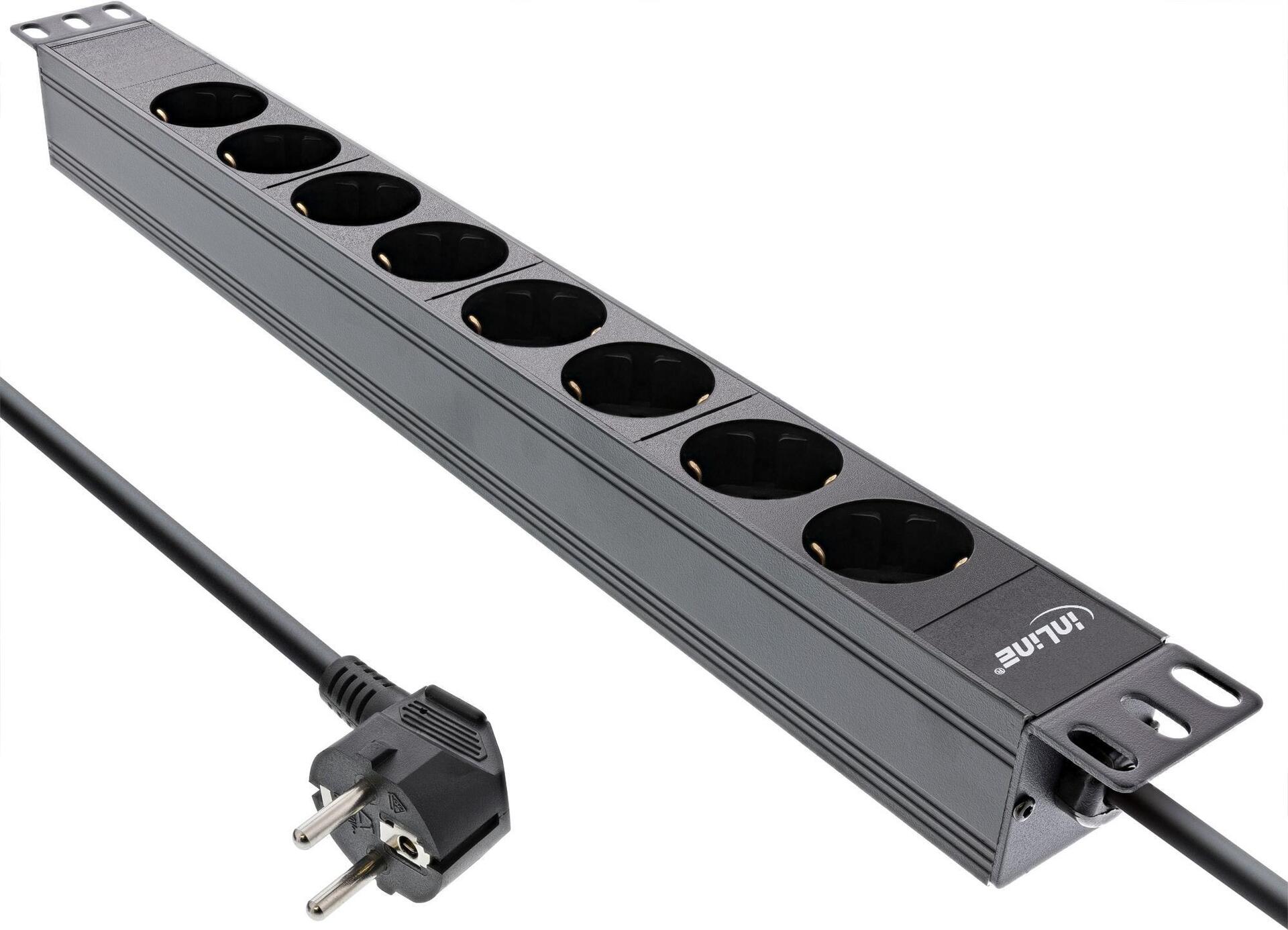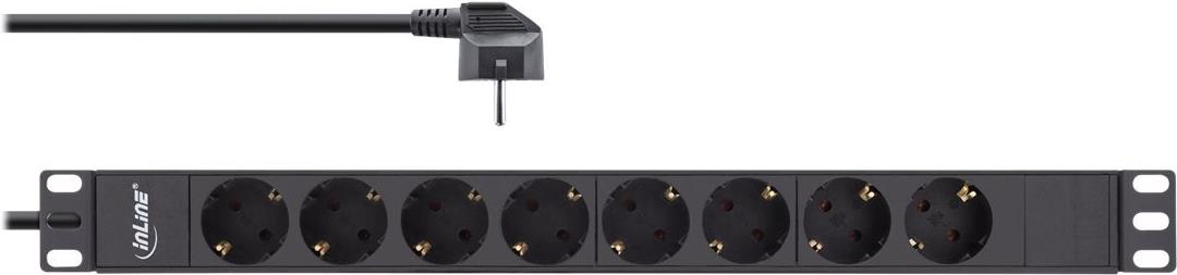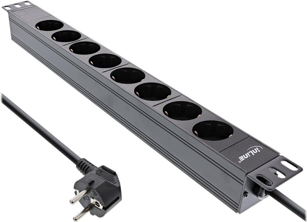 InLine® 48,30cm (19") Steckdosenleiste, 8-fach Schutzkontakt, ohne Schalter, 2m, schwarz (16418I)