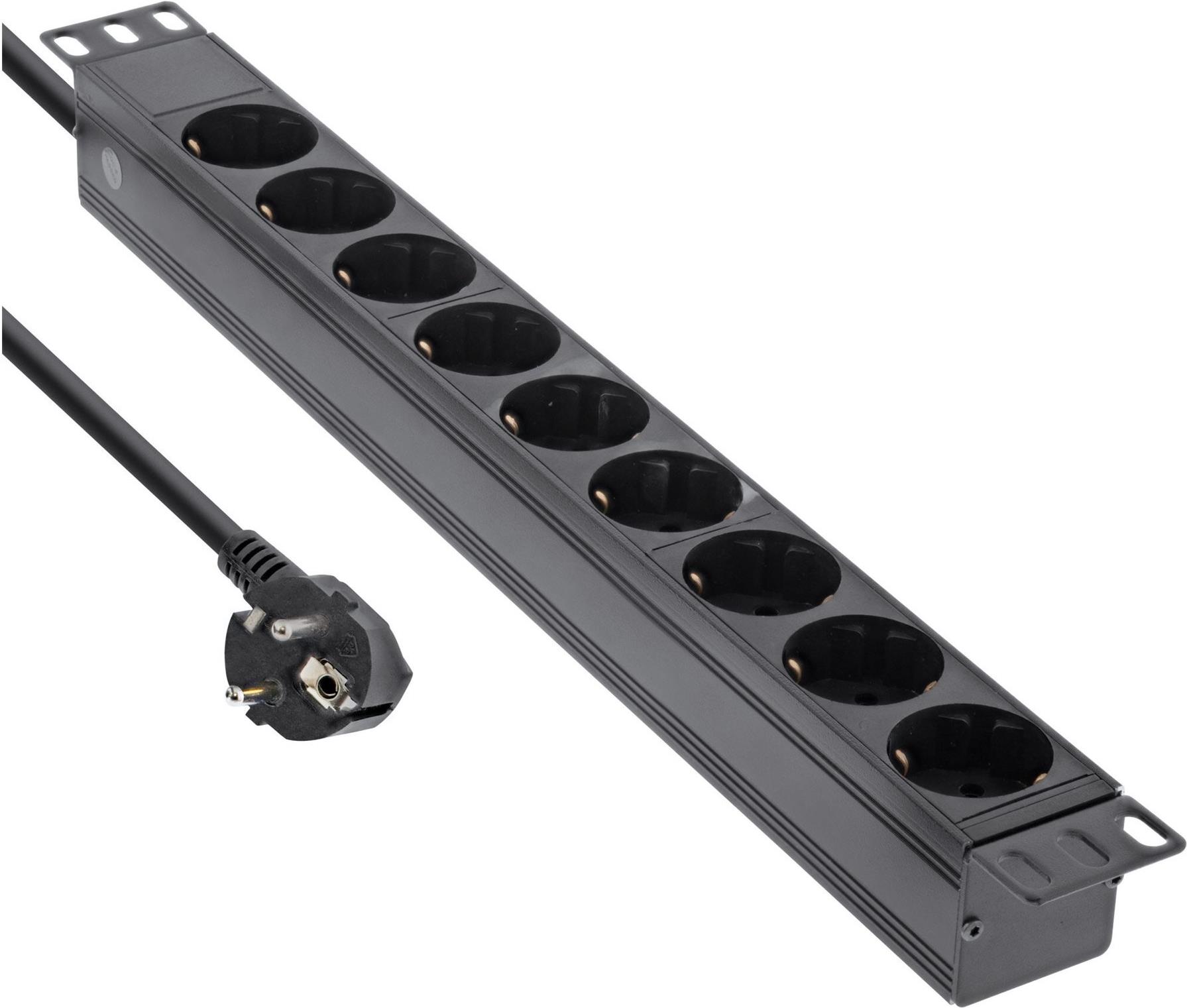 InLine® 48,30cm (19") Steckdosenleiste, 9-fach Schutzkontakt, ohne Schalter, 2m, schwarz (16419I)