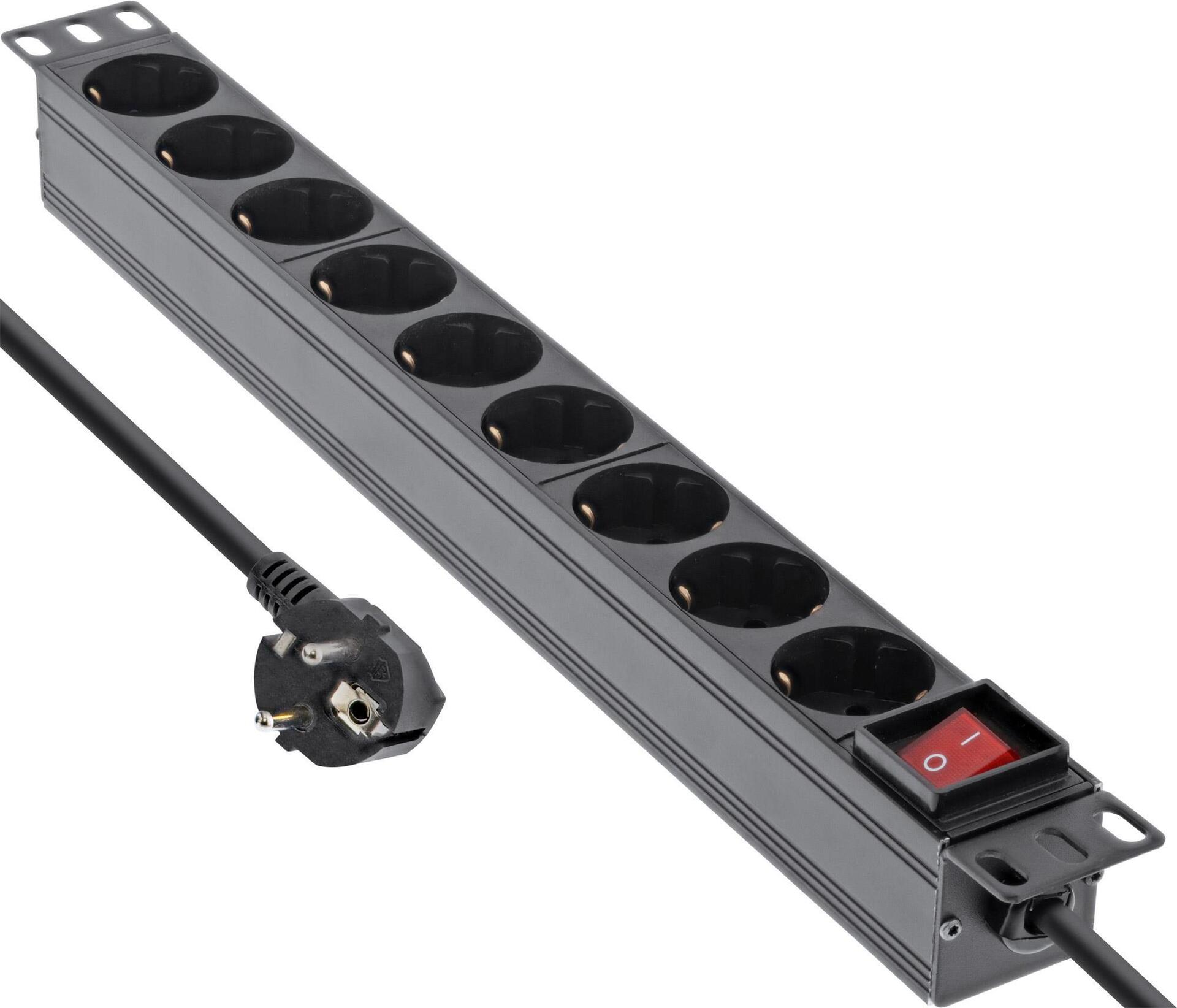 InLine® 48,30cm (19") Steckdosenleiste, 9-fach Schutzkontakt, mit Schalter, 2m, schwarz (16419S)