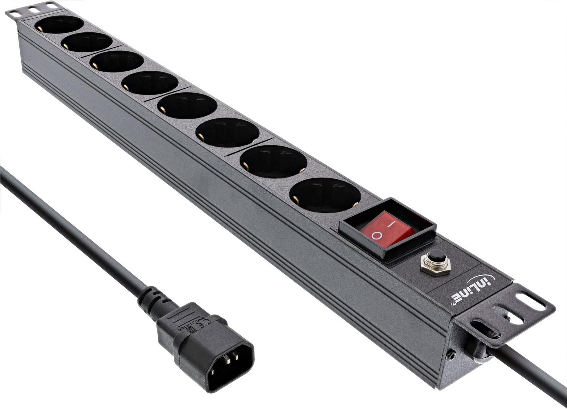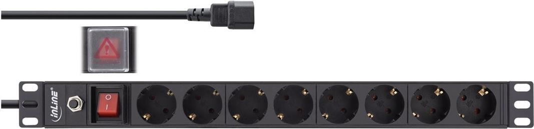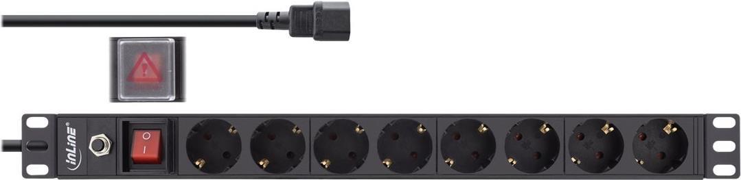 InLine® 48,30cm (19") Steckdosenleiste, 8-fach Schutzkontakt, C14 Stecker, Überlastschutz (16428S)