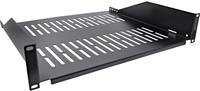 Einfacher Fachboden zur Montage an die (vordere) 19" Profilschiene, zur Aufbewahrung von Geräten und Netzwerkzubehör. Der Fachboden ist aus stabilem SPCC Stahlblech gefertigt und pulverbeschichtet, robust und leicht zu montieren. Inkl. Schraubenset als Beipack: 4x Schauben, 4x Käfigmuttern, 4x Unterlegscheibe